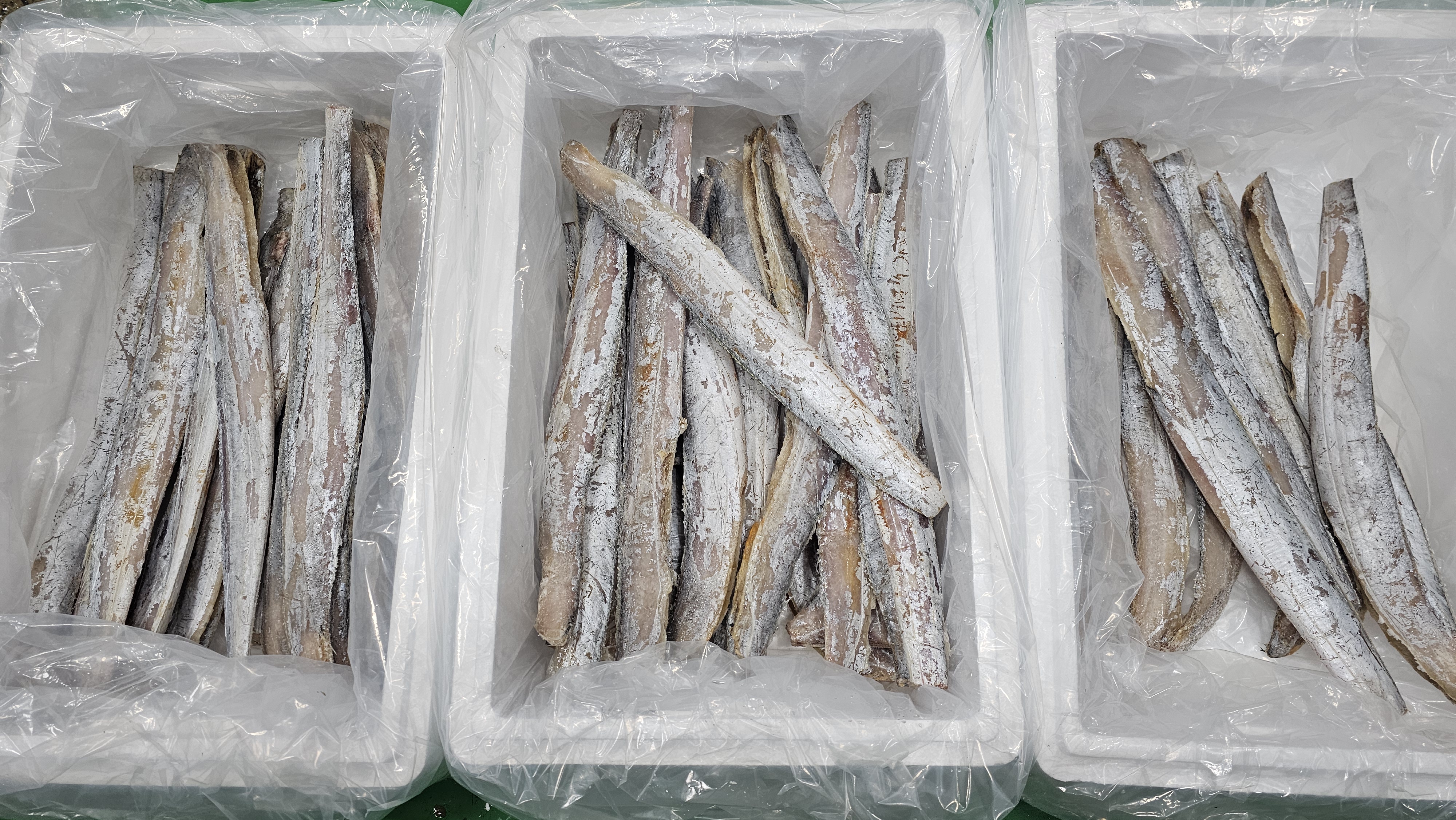 살아있는 붕장어를 손질해서 살만 냉동 하였습니다.