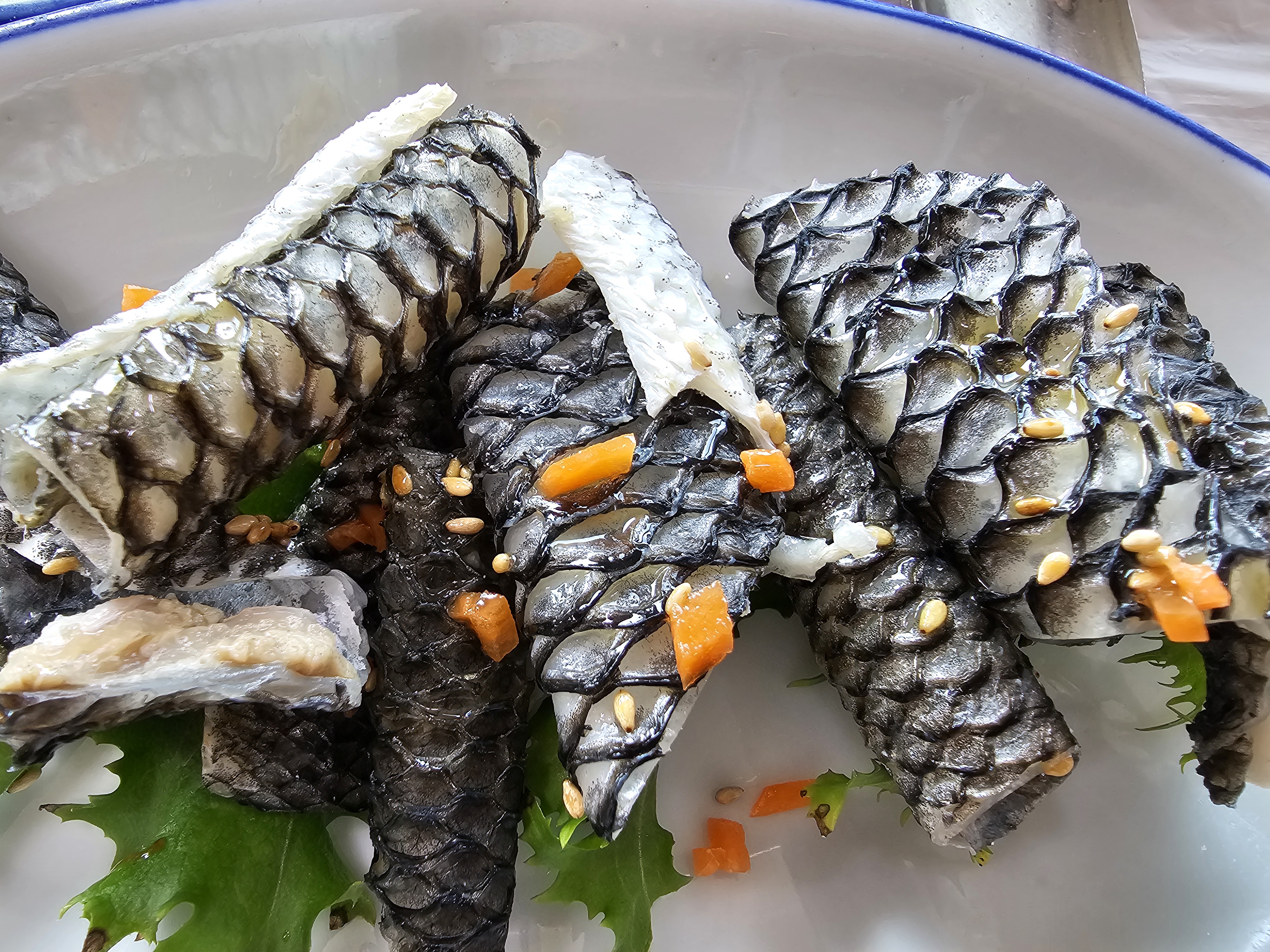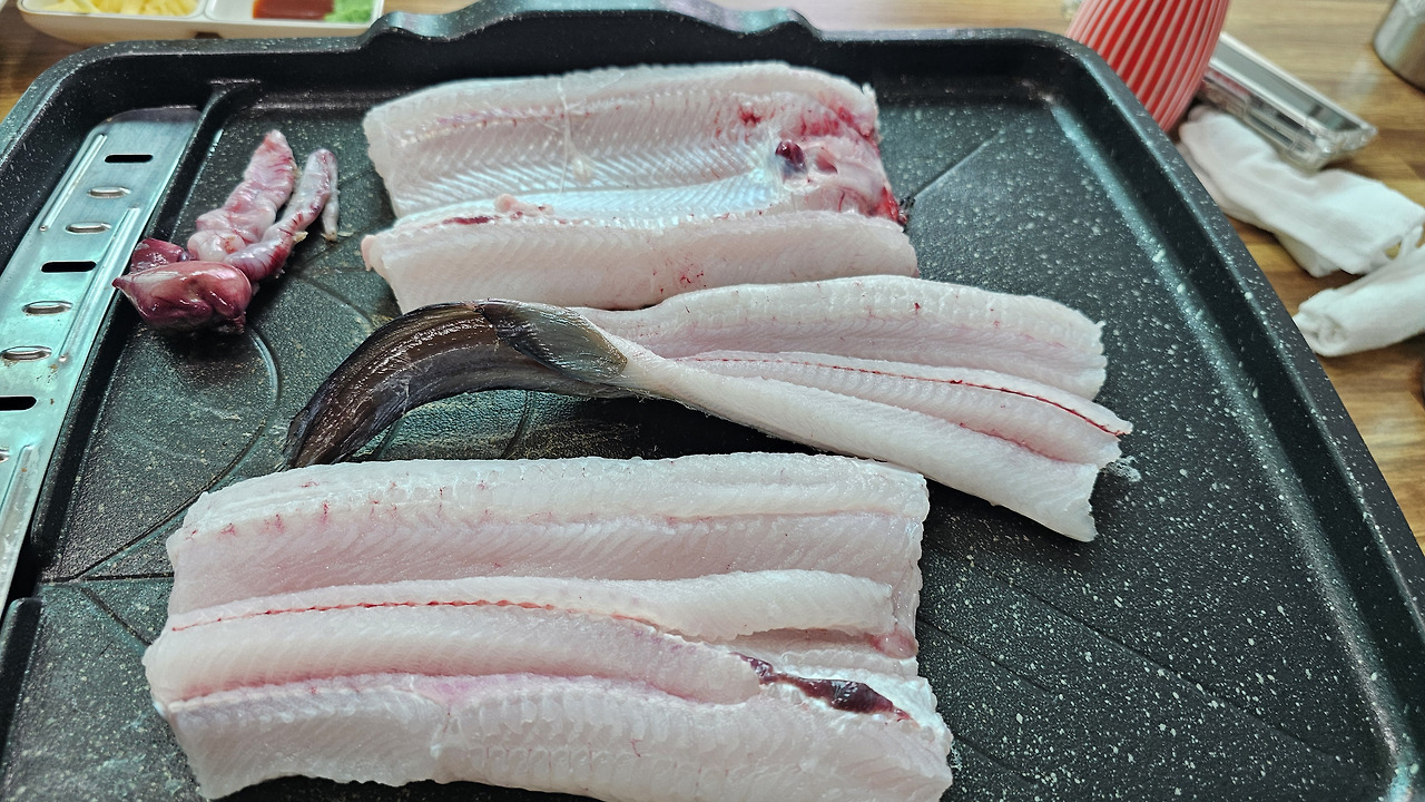 칼집 많이 넣어서 일주일 넘게 말려서 드시고 토막내서 데쳐서 식초장에 찍어 드시고 회 잘게 썰어서 초무침으로 드세요.
