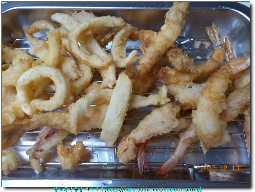 한치튀김과 새우.. 쭈꾸미 튀김도 했는데 모냥새가 좋지않아 생략했네요.