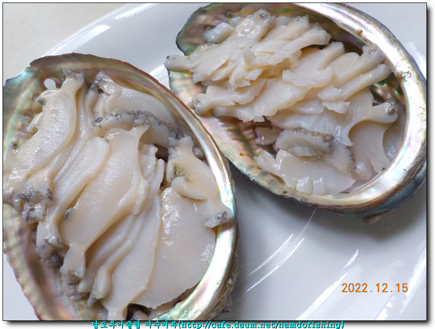 아들이 만든 전복 풀코스 중 익힌 전복입니다.