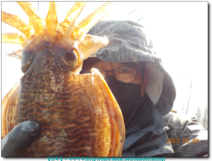 그래도 럭비공보다 더 큰 갑오징어를 힘겹게 올렸고