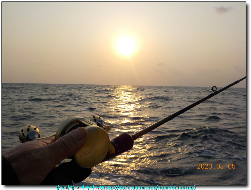 3시반 출조항에 집결하고 자리뽑고 떡국 먹고 출항하여 거문, 여서 중간에 풍 내리는 시간이 8시 입니다.