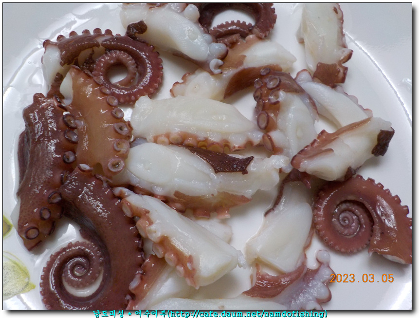 살아있는 문어 세다리 짤라 숙회로 오랜만에 먹어선지 맛나데요.