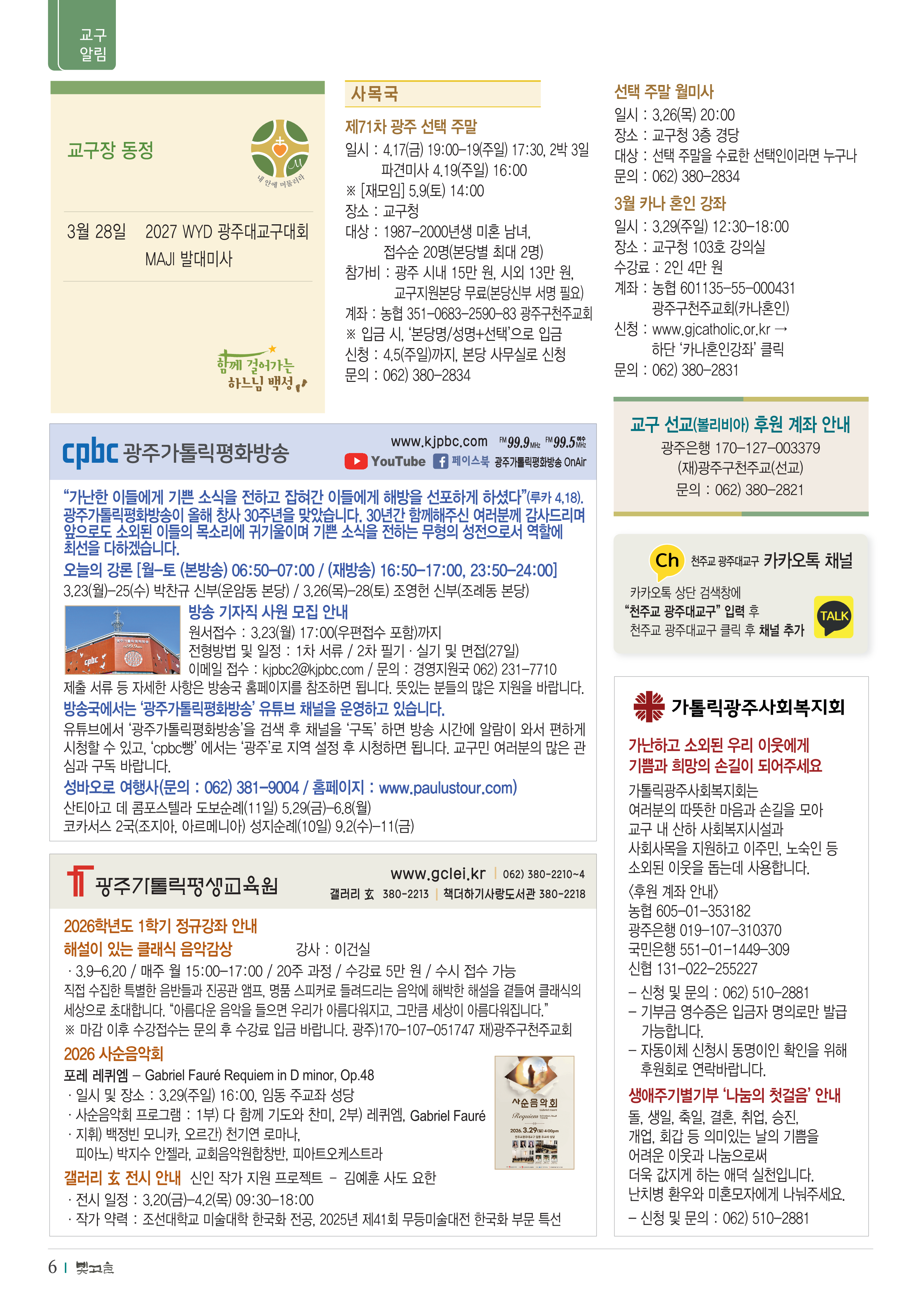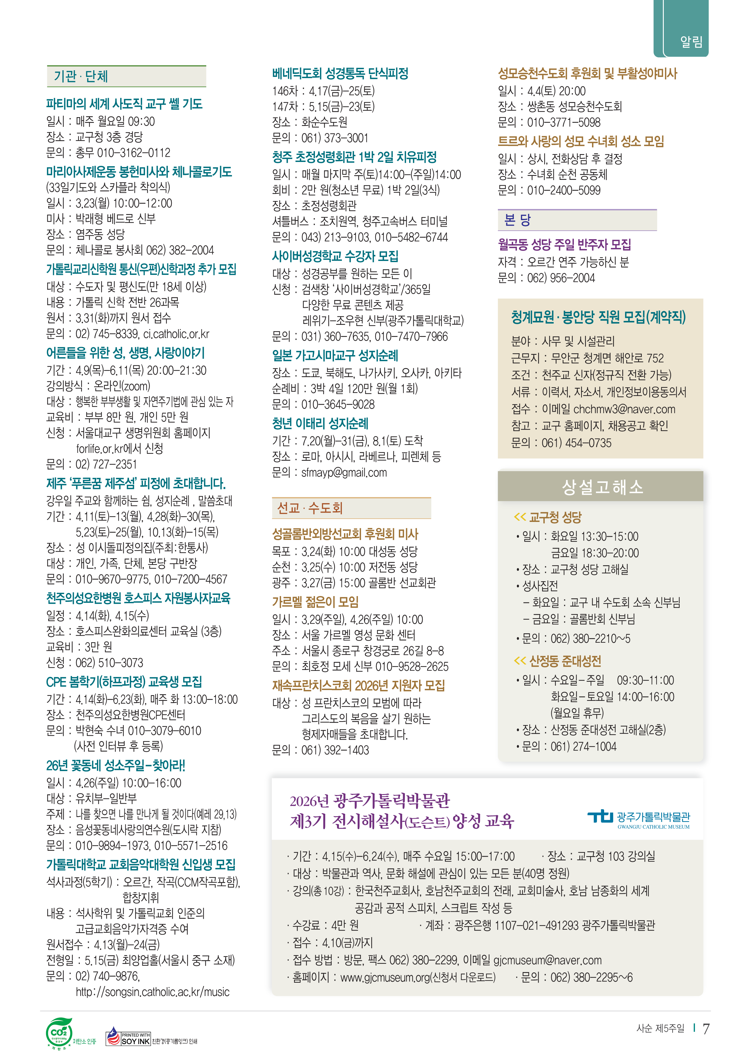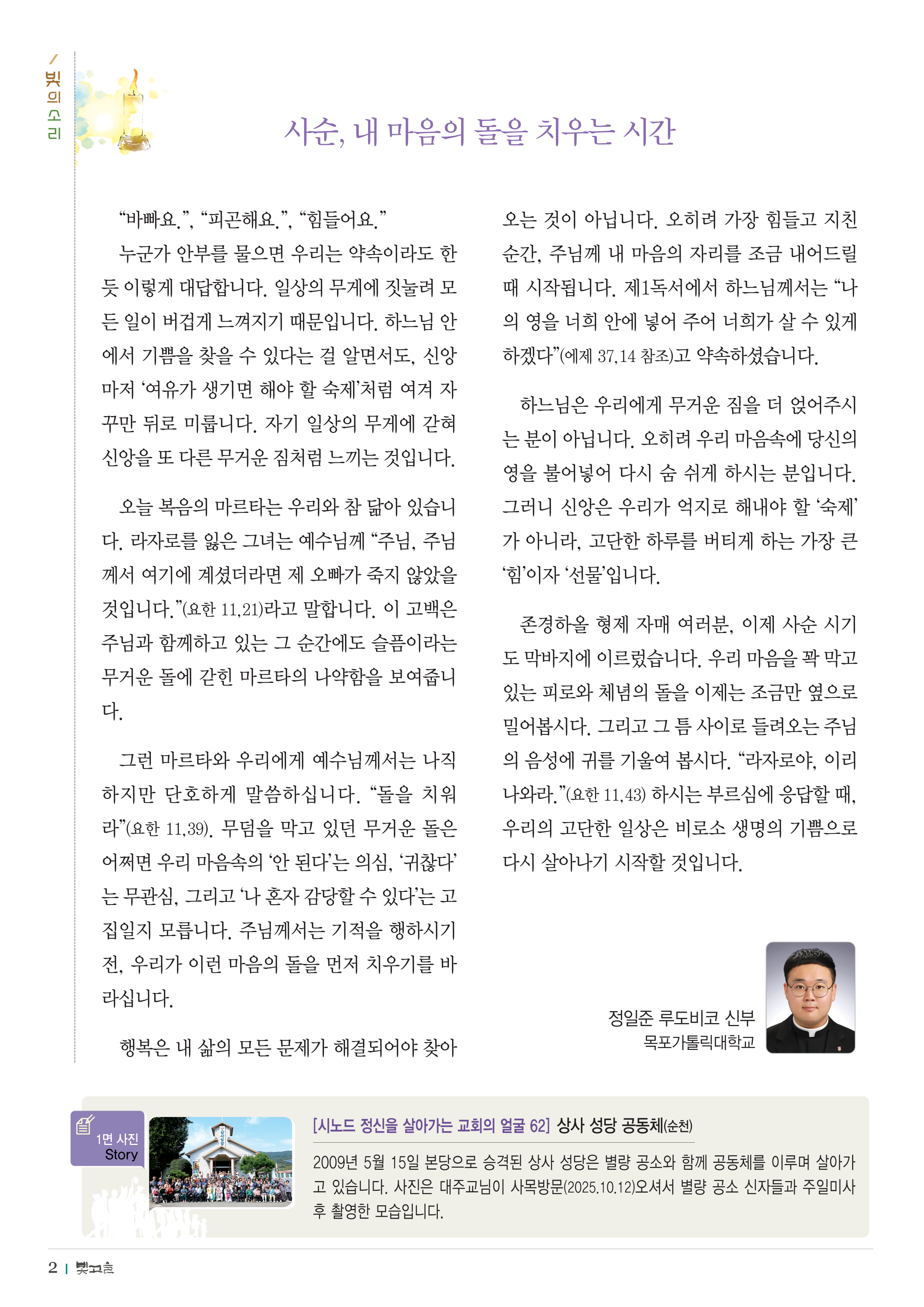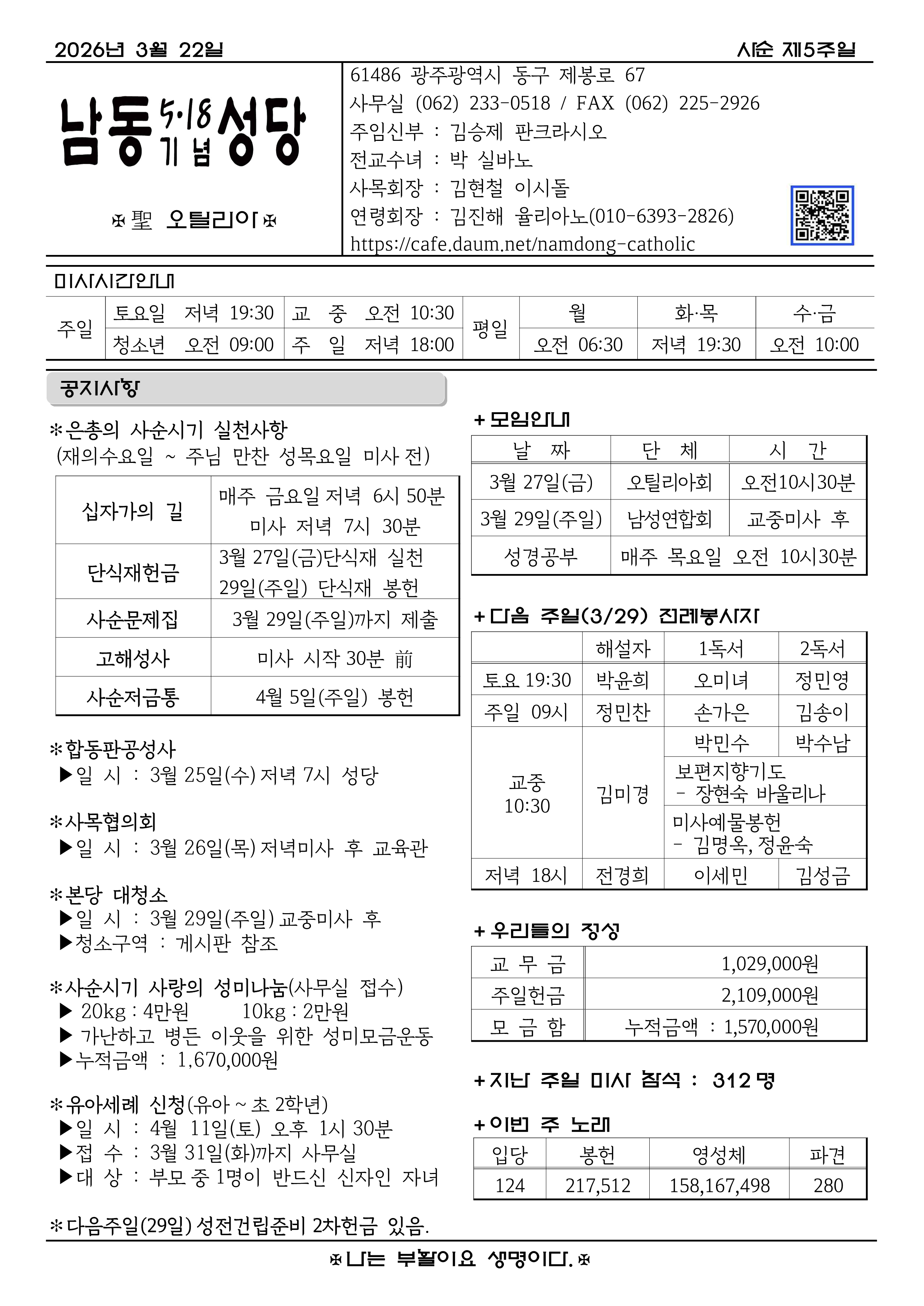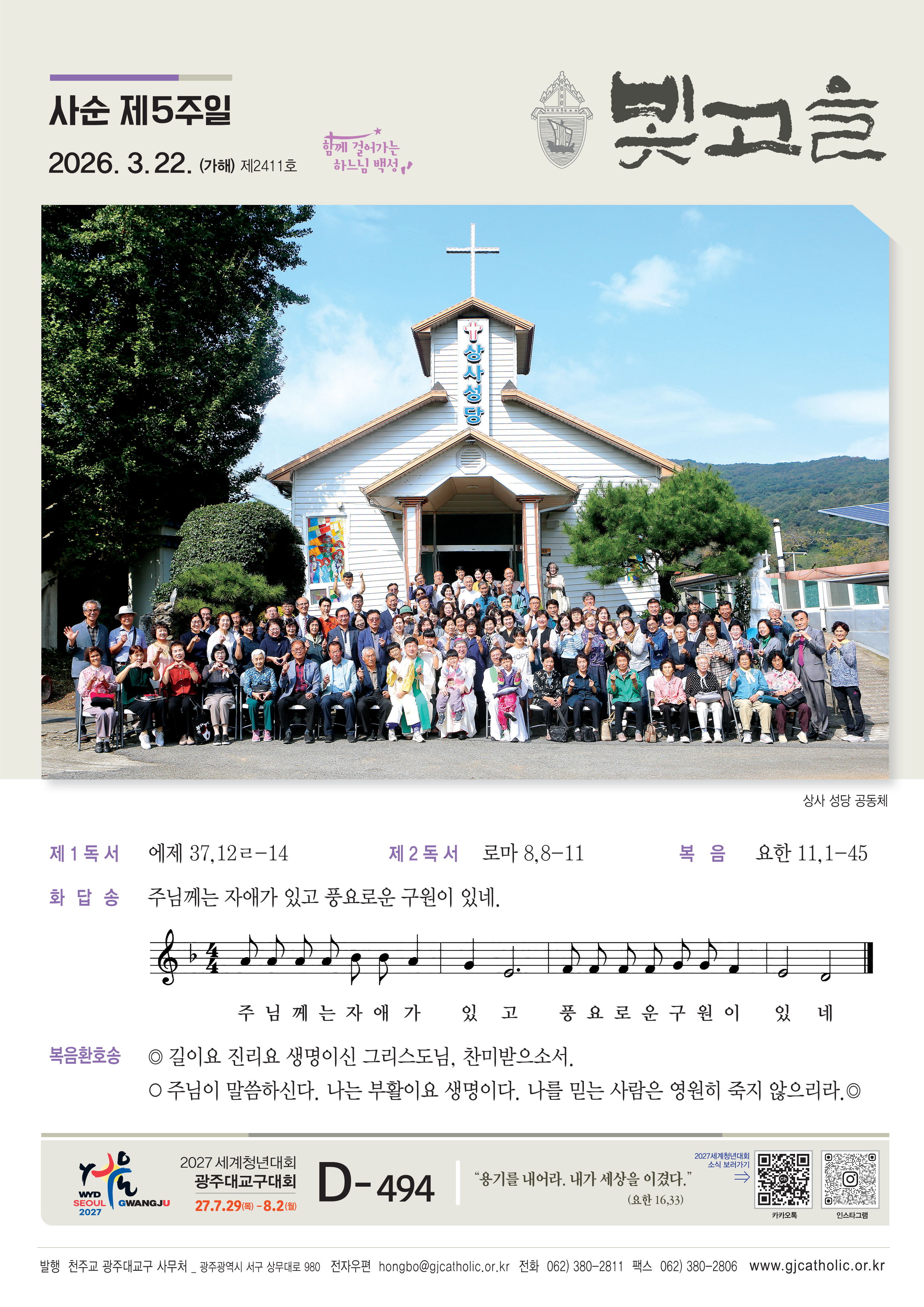 [주보] 2026.03.22(가해) - 사순 제5주일 작성자isidol ~^^|작성시간26.03.20|조회수166 목록 댓글 0 글자크기 작게가 글자크기 크게가 사순 제5주일2026. 3. 22(가해) 다음검색 현재 게시글 추가 기능 열기 북마크 공유하기 신고 센터로 신고 댓글 댓글 0 댓글쓰기 답글쓰기 댓글 리스트