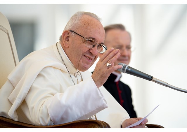 오늘 일반알현도 지난주 수요일처럼 진행됩니다. 바오로 6세 홀에는 더위를 피해 좀 더 쾌적한 환경에서 많은 환우들이 함께하고 있습니다. 그들은 대형 화면을 통해 우리와 함께 할 것이며, 우리도 그들과 함께 할 것입니다. 둘이 아닌 하나의 일반알현입니다. 바오로 6세 홀에 계시는 환우들에게 인사합시다.