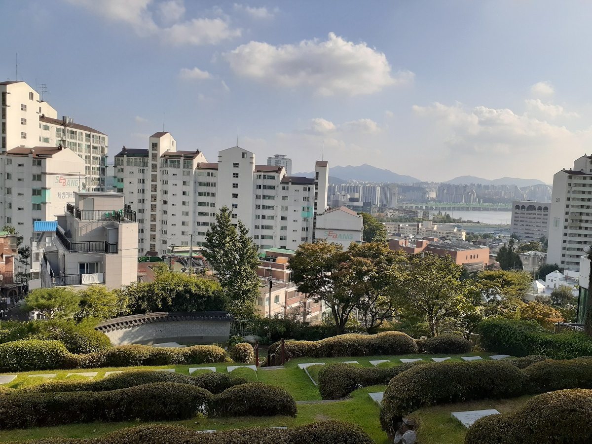 휘어도는 한강 물줄기, 거기에 떠 있는 밤섬과 여의도, 북쪽으로 보이는 인왕산과 안산, 그 뒤를 든든히 받쳐 주고 있는 북한산의 웅장한 자태, 남쪽으로 보이는 새남터, 그 뒤로 멀리 보이는 관악산과 청계산, ……. 어느 것 하나 놓치고 싶지 않은 그림들이었다.