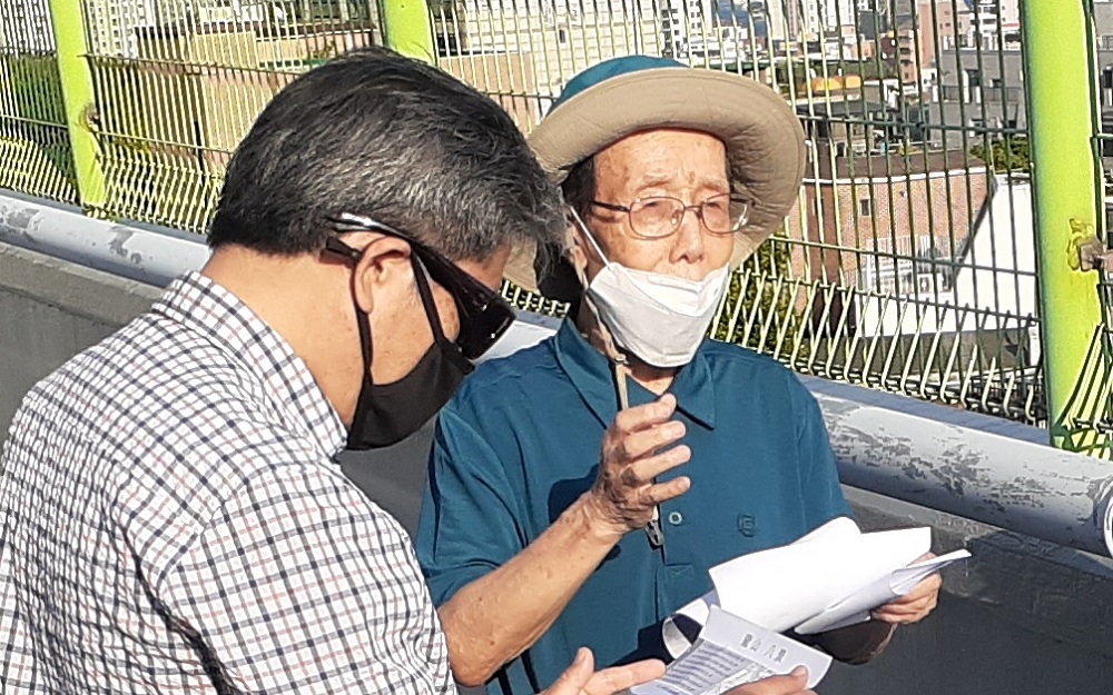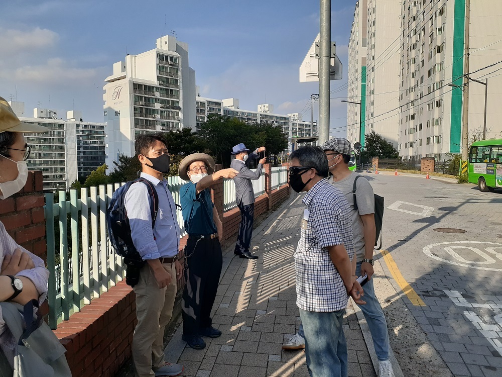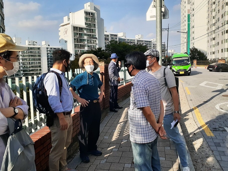 한국땅이름학회의 배우리 회장. 용산문화원의 김천수 연구실장, 성곽길 역사문화연구소 최철호 소장, 한겨레신문의 김규원 선임기자 등을 중심으로 한 <용산의 뿌리찾기 모임(가칭)>의 일행들이 10월 2일 오후, '용산(78m)' 위치를 확인하기 위해 그 정상으로 추정되는 용산구 용산성당(산천동 소재) 주위를 돌아보았다.