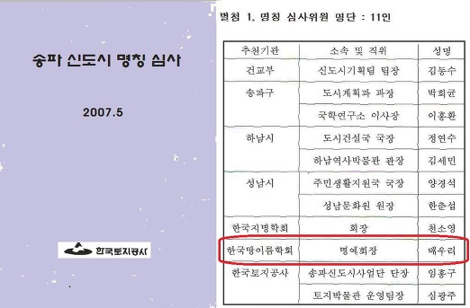 여기서, 우리는 오랫동안 익히 불러온 '송파'라는 이름을 '올림픽'이란 이름으로 지워 버리려 했던 일부 사람들을 크게 나무라고 싶다.