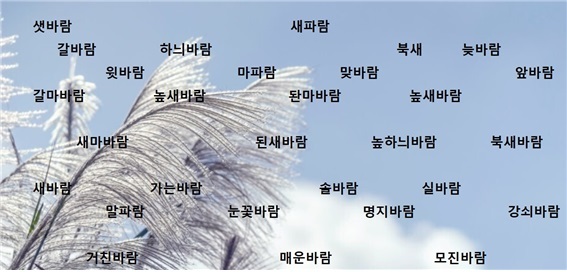 바람은 부는 방향이나 그 세기에 따라서도 이름이 달리 붙는다. 샛바람, 하늬바람, 마파람, 높새바람, 눈꽃바람 등…… 바람과 관련된 이름은 정말 많다.