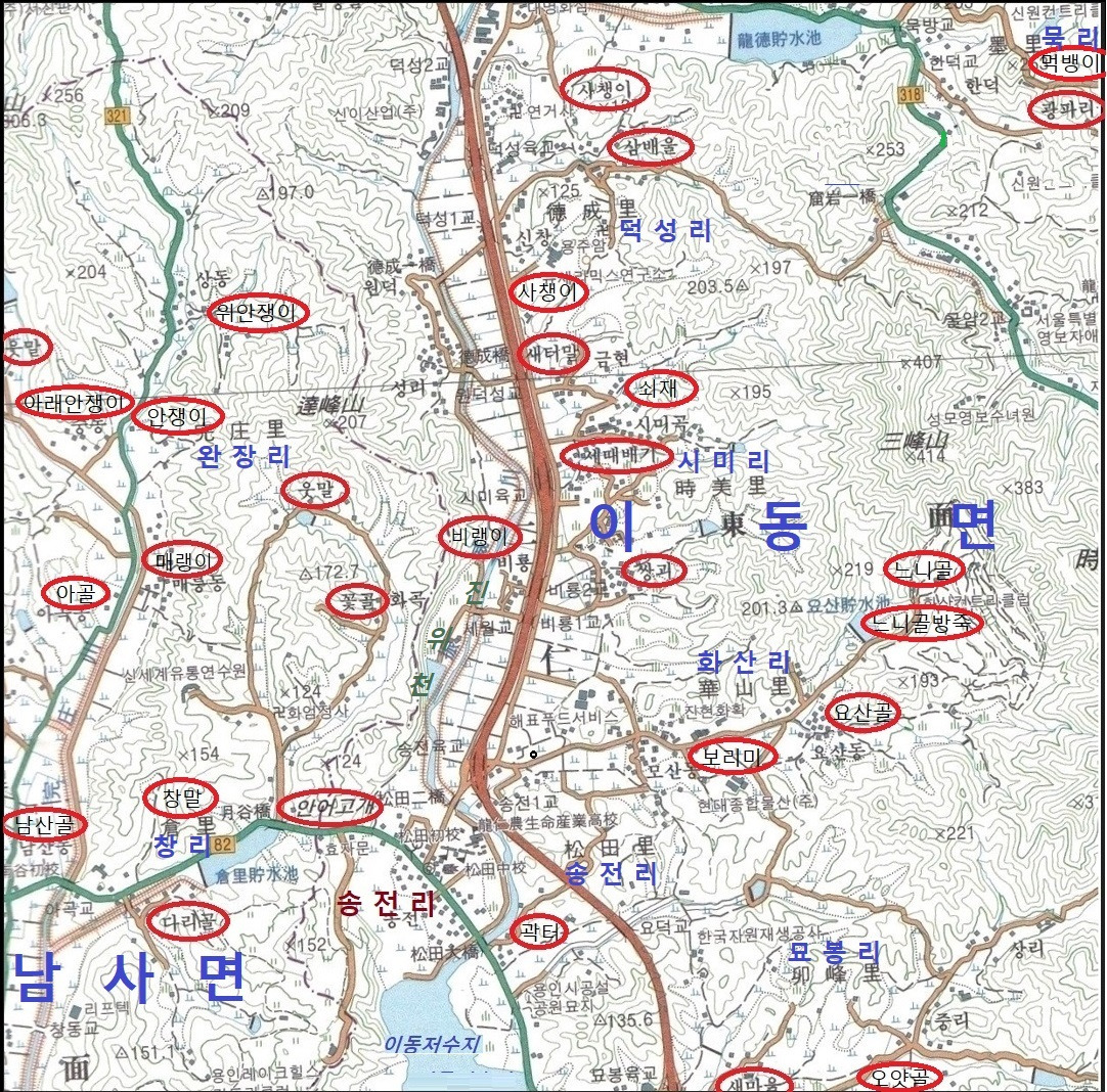 덕성골(德成) 마을 용인군 이동면 덕성리 덕성리.