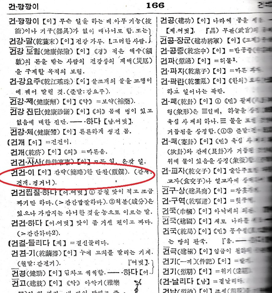 북한에서는 '소금'을 '건건이'라고도 한다. <조선말사전>