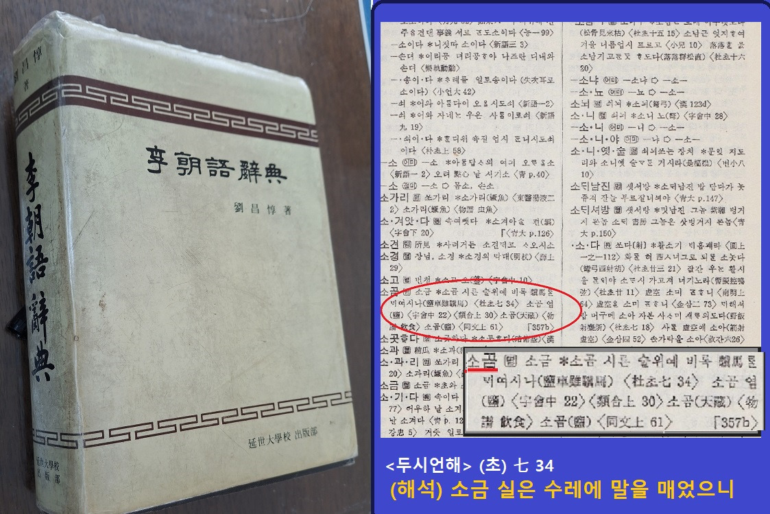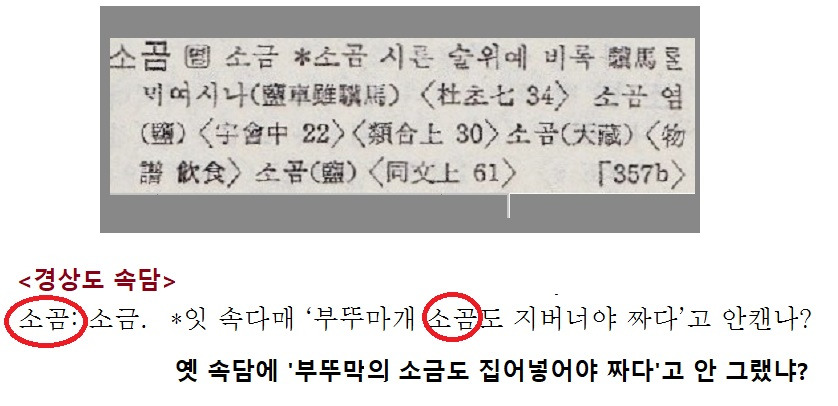 <두시언해>에도 '소금'의 옛말이 '소곰'이라고 하고 있다.