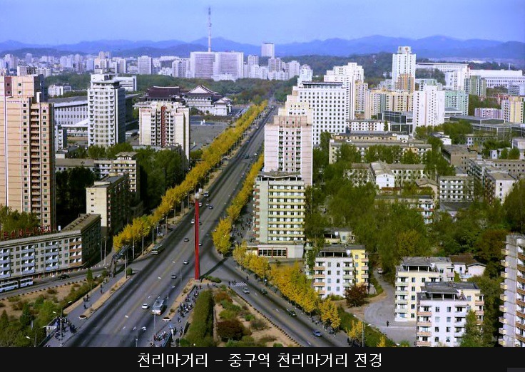천리마거리에는 현대적 설비를 갖춘 근로자들의 아파트들과 인민문화궁전, 평양체육관, 창광산여관, 창광원, 빙상관, 청류관을 비롯한 크고 웅장한 공공문화건물들과 상업편의 봉사시설들이 있다.