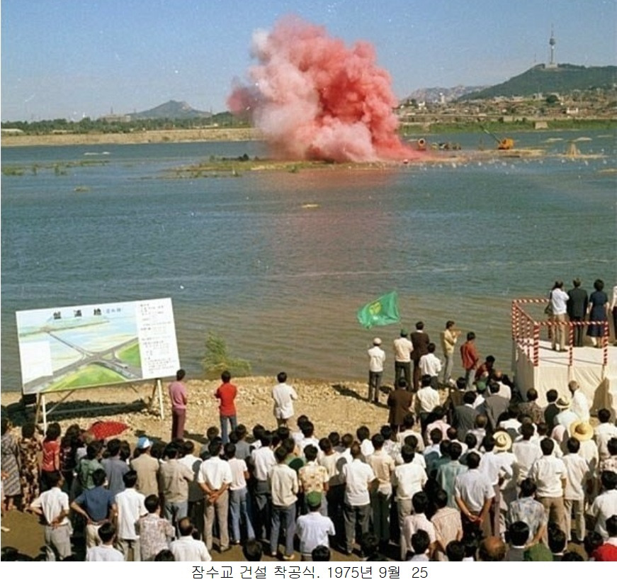 ▲ 사진 ; 1975년 9월 잠수교 건설 착공식