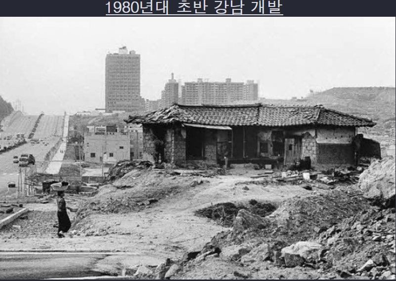 “강북으로는 어찌 할 도리가 없었어요. 인구가 점점 늘어나서. 강남 개발을 처음 시작할 때, 1970년부터 제대로 시작을 했는데 그때 서울 인구가 600만 정도가 되었거든. 강북 가지고는 해결이 안 되었어. 그래서 강남개발 시작하게 되었지.” (손정목, 전 서울시 도시계획 국장)