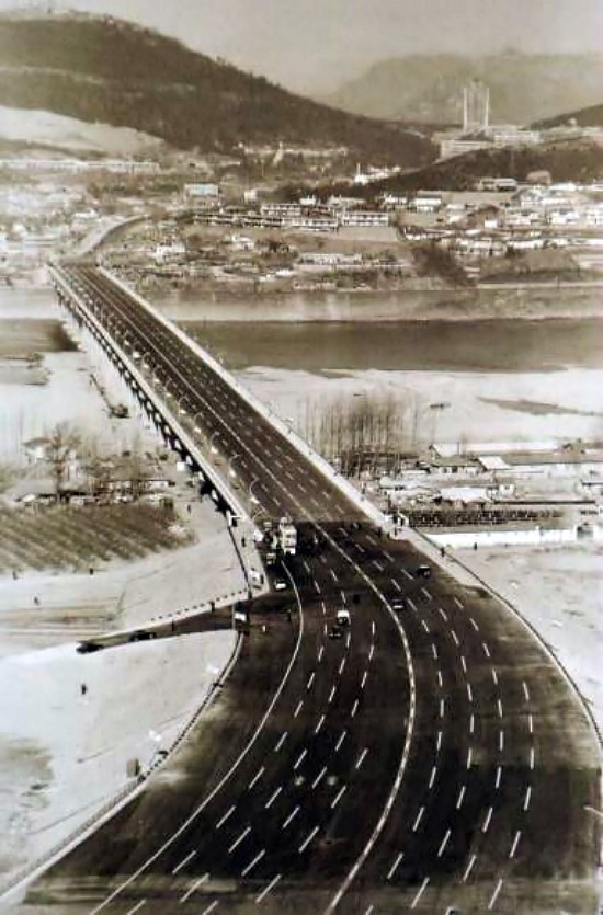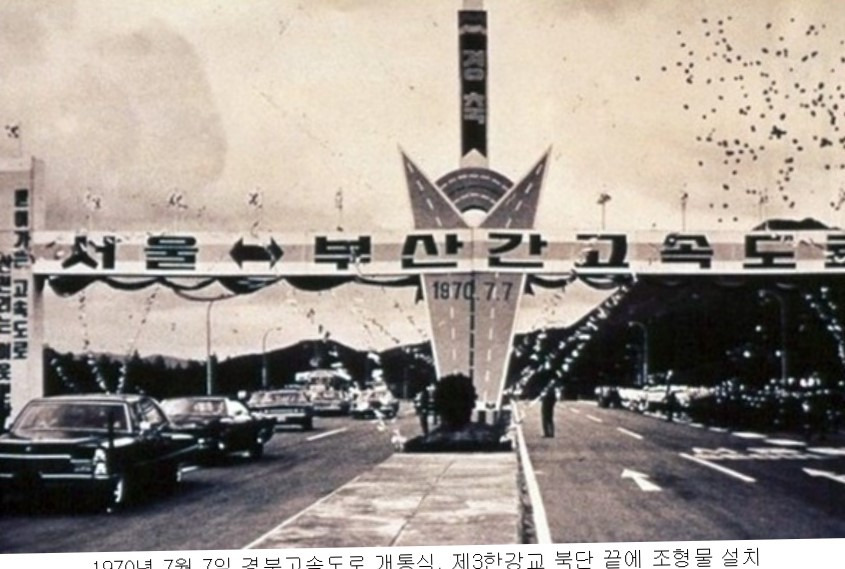 ▲ 사진 ; 1969년 강남 개발 계기 경부고속도로 서울기점 제3한강교 한남대교