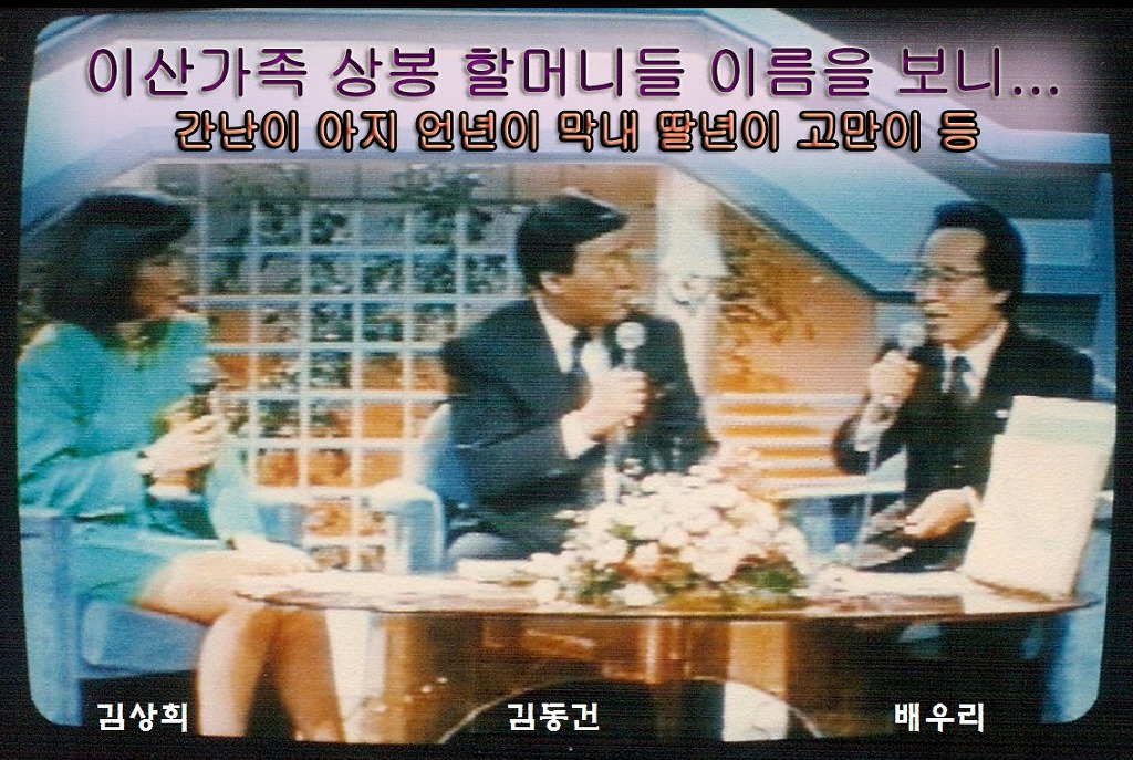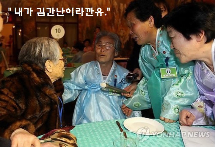 전화기 앞에서는 예기치 않은 수화기 빼앗기 싸움이 벌어졌다. 각 할머니들은 자기가 '김간난'이라며 서로 전화를 받겠다는 것이다. 여러 해 전, 방송국 '이산(흩어진) 가족 찾기' 현장에서 있었던 일이다.