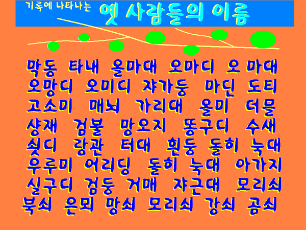"간난'이란 이름도 '아기'라는 뜻과 같지. 이 이름은 이렇게 되어 나온 이름이거든."