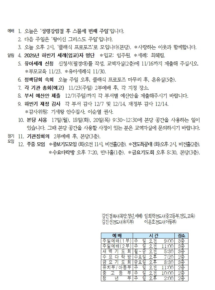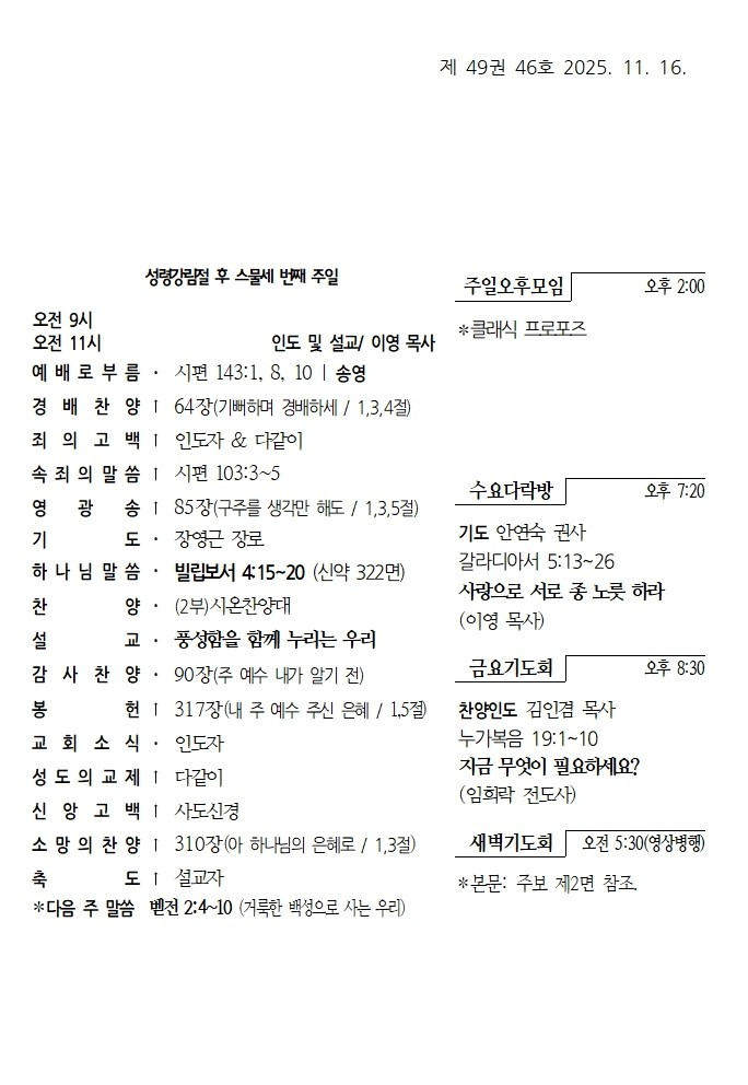 2025.11.16 주보 작성자원만해|작성시간25.11.16|조회수22 목록 댓글 0 글자크기 작게가 글자크기 크게가 다음검색 현재 게시글 추가 기능 열기 북마크 공유하기 신고 센터로 신고 댓글 댓글 0 댓글쓰기 답글쓰기 댓글 리스트