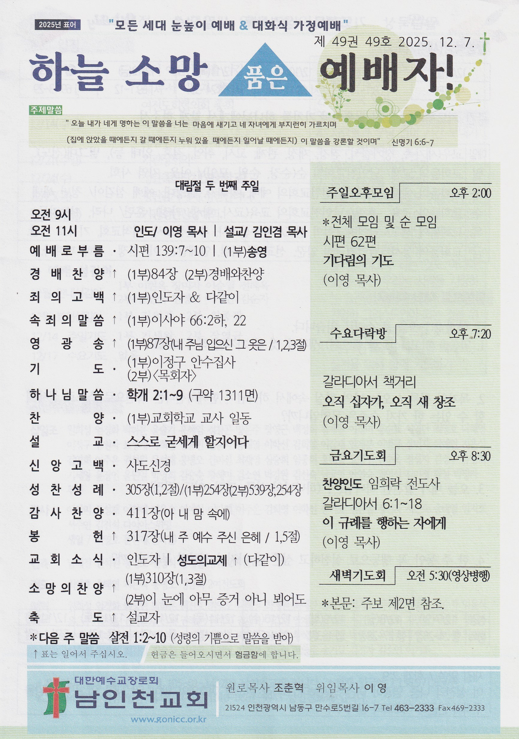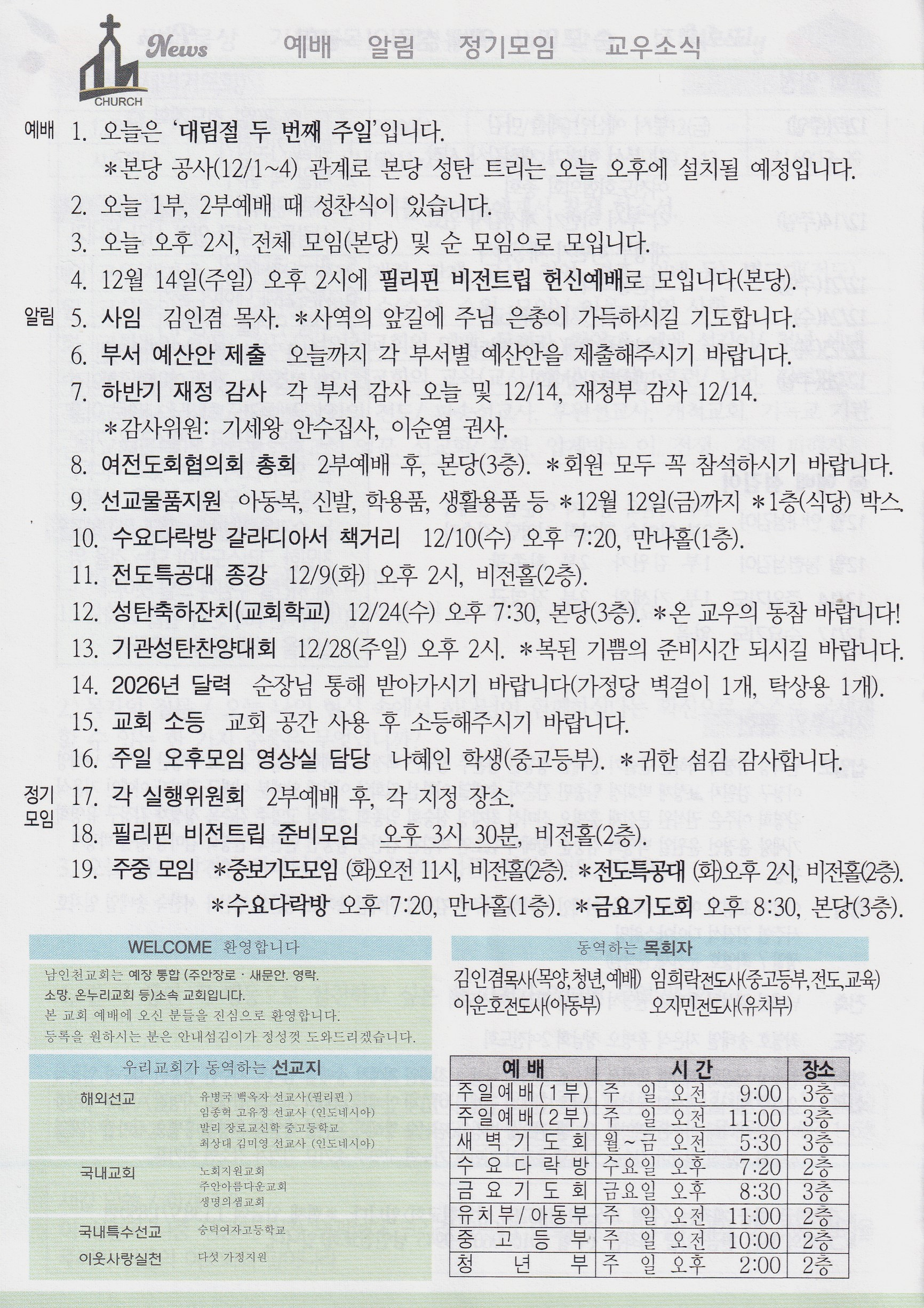 2025.12.07 주보 작성자원만해|작성시간25.12.06|조회수36 목록 댓글 0 글자크기 작게가 글자크기 크게가 다음검색 현재 게시글 추가 기능 열기 북마크 공유하기 신고 센터로 신고 댓글 댓글 0 댓글쓰기 답글쓰기 댓글 리스트