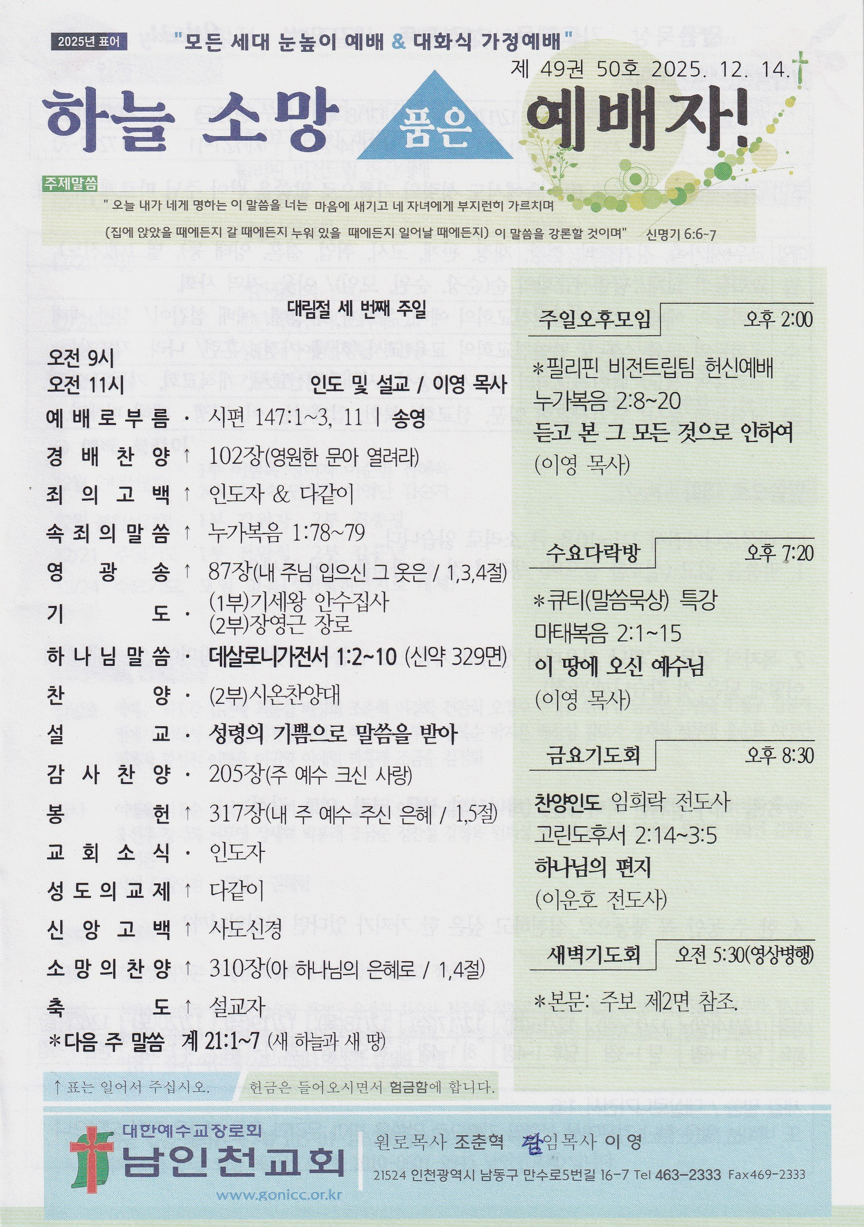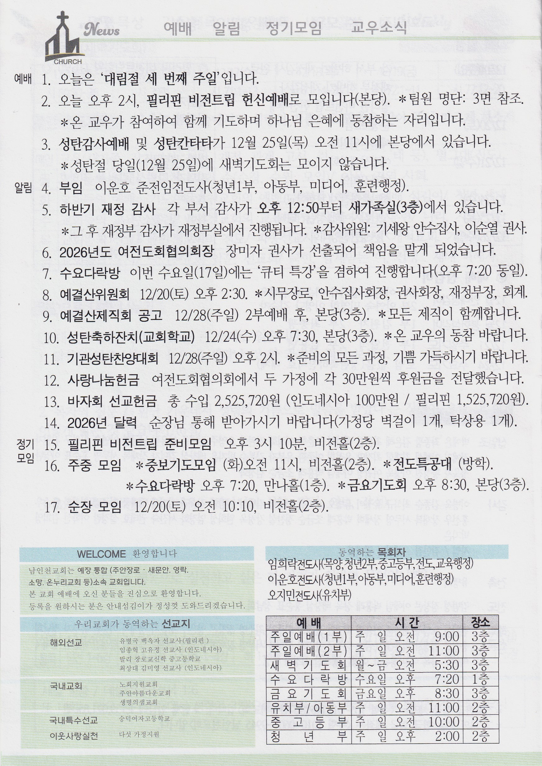 2025.12.14 주보 작성자원만해|작성시간25.12.13|조회수30 목록 댓글 0 글자크기 작게가 글자크기 크게가 다음검색 현재 게시글 추가 기능 열기 북마크 공유하기 신고 센터로 신고 댓글 댓글 0 댓글쓰기 답글쓰기 댓글 리스트