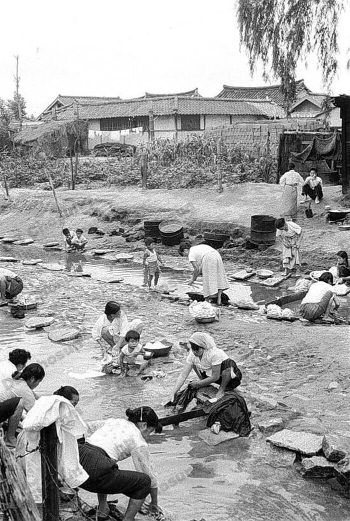 1968년 부산에서 촬영한 흑백 사진이다. 물가에서 노는 소년들의