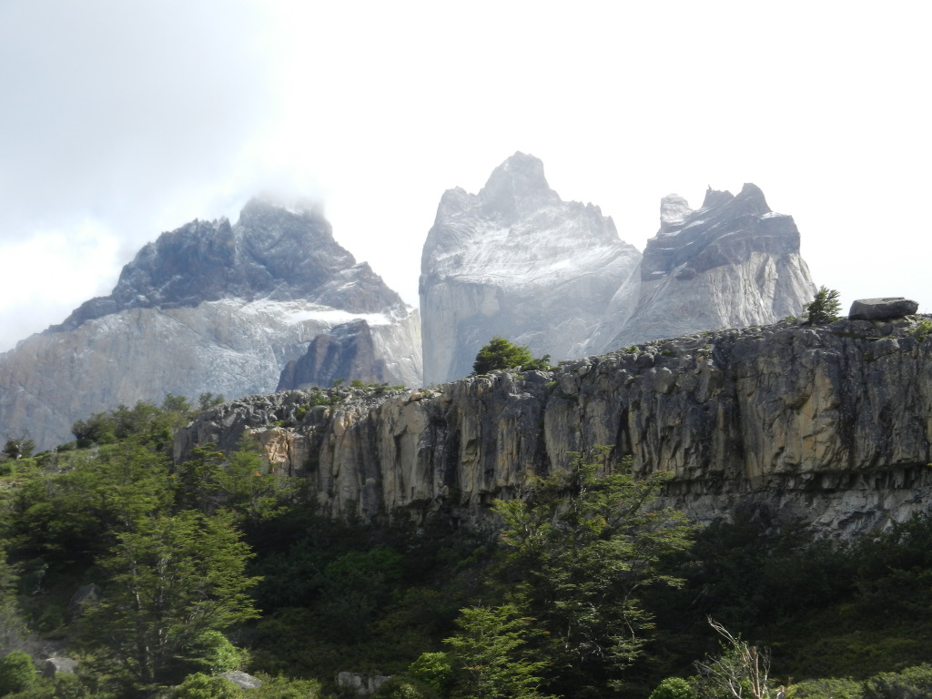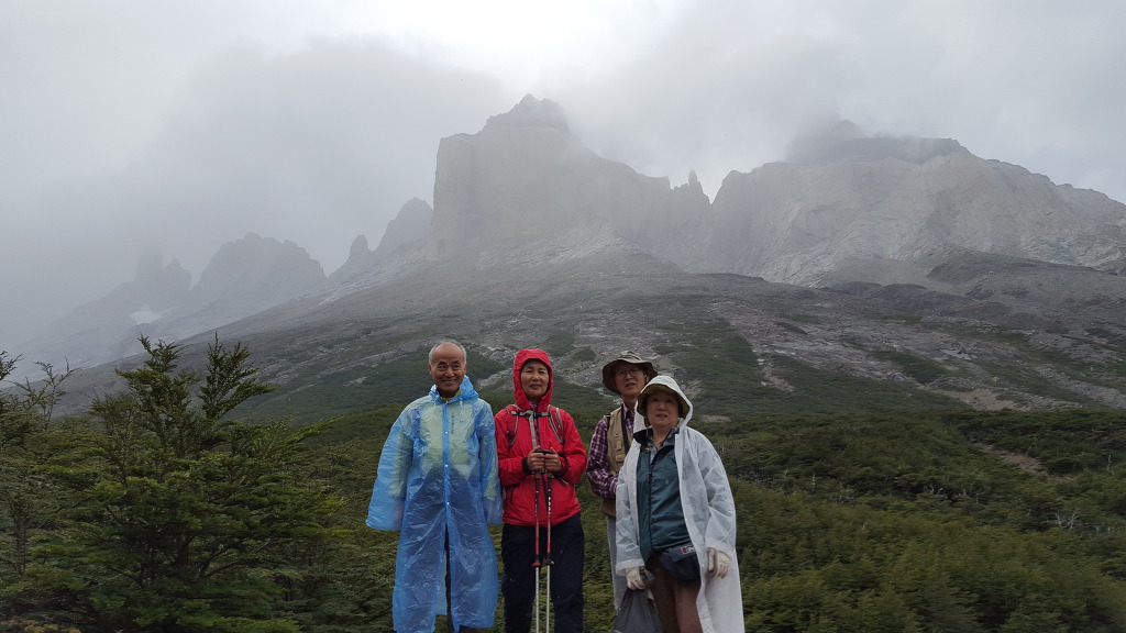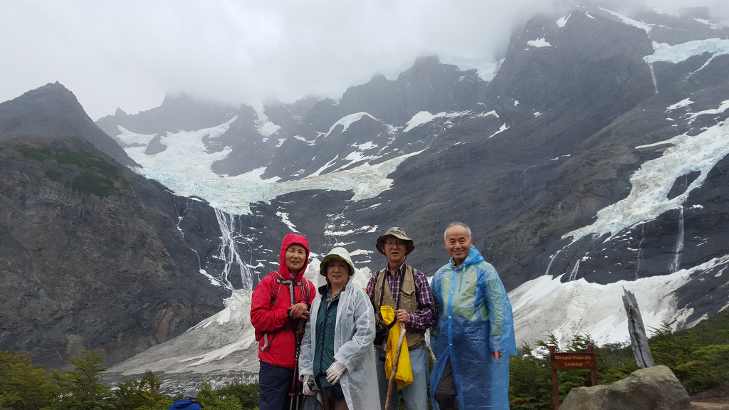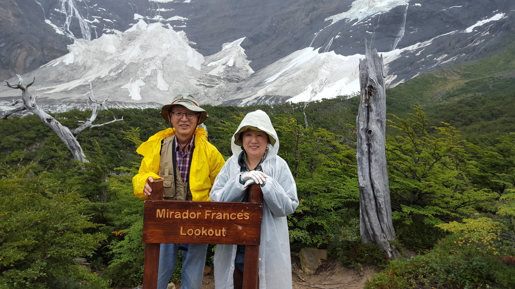 여기서 두 보살님들은 좀쉬다 내려가라하고, 남자 둘이 마지막 목적지를 정벌하러 나섰다. 한시간반 정도를 올라가니 너른 자갈밭이 나오는데 병풍처럼 산이 둘러쳐져 있는 Britanico이다. 여기서 70대 선배님은 되돌아가시고 60대인 내가 마지막 40분을 더 피치를 올려, 비바람속에서도 Lookout까지 갔다왔다. 구름이 끼어 전망은 별로 였지만 성취감은 있었다. 특히 Britanico에 다시 들어오면서 왼쪽에 Esoanda/Joja/Mascara Hill들이 거대한 한덩어리 뿌리로 묵묵히 우뚝 앉아 있는 것을 무심히 바라보니 자연의 영기가 느껴지며, 우리 마음 깊은 곳도 그같이 튼튼하다는 확신감 같은 것이 들었다. 잊지못할 풍경이었다. 자연과 산은 언제나 그기서 말없이 있고, 또 오늘같이 비바람 부는날은 태고의 자기 소리가 있다.