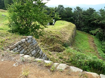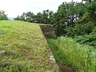 삼국시대 특징인 두터운 성곽이다. 근래 보수된 흔적이 역력하다.