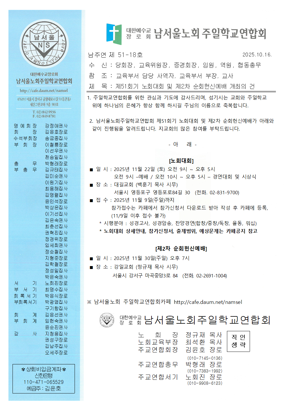 노회대회 개최 공문 작성자서기 노회진(공항벧엘)|작성시간25.10.17|조회수94 목록 댓글 0 글자크기 작게가 글자크기 크게가 다음검색 현재 게시글 추가 기능 열기 북마크 공유하기 신고 센터로 신고 댓글 댓글 0 댓글쓰기 답글쓰기 댓글 리스트