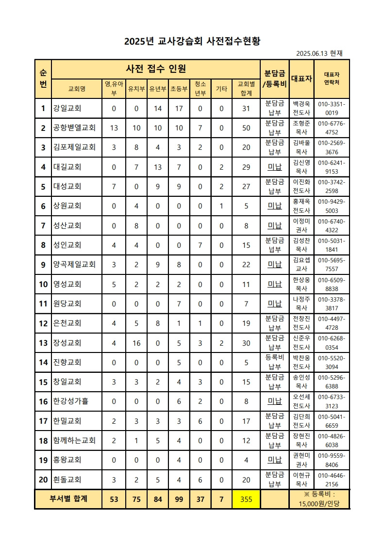 1. 등록비분담금을 납부한 교회는 등록비 무료입니다.