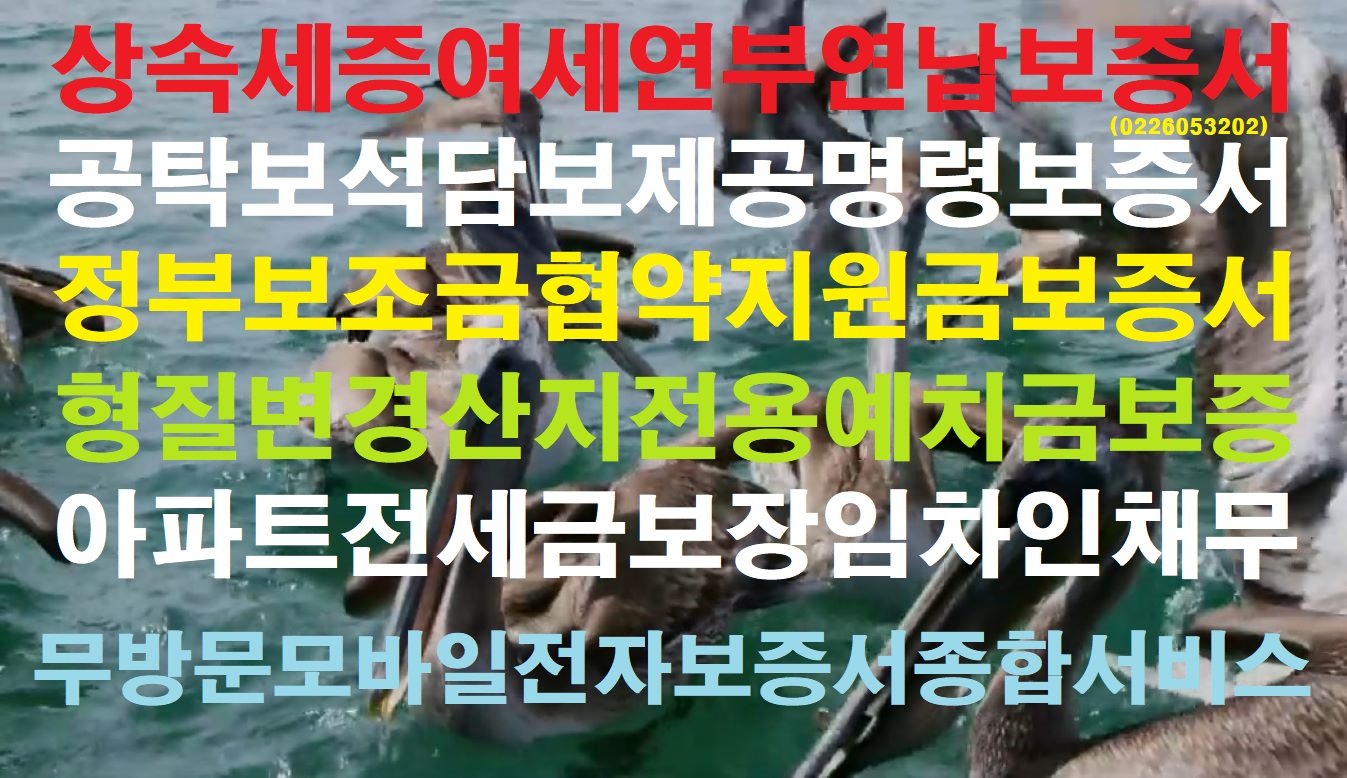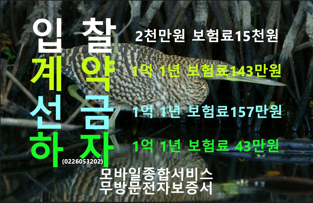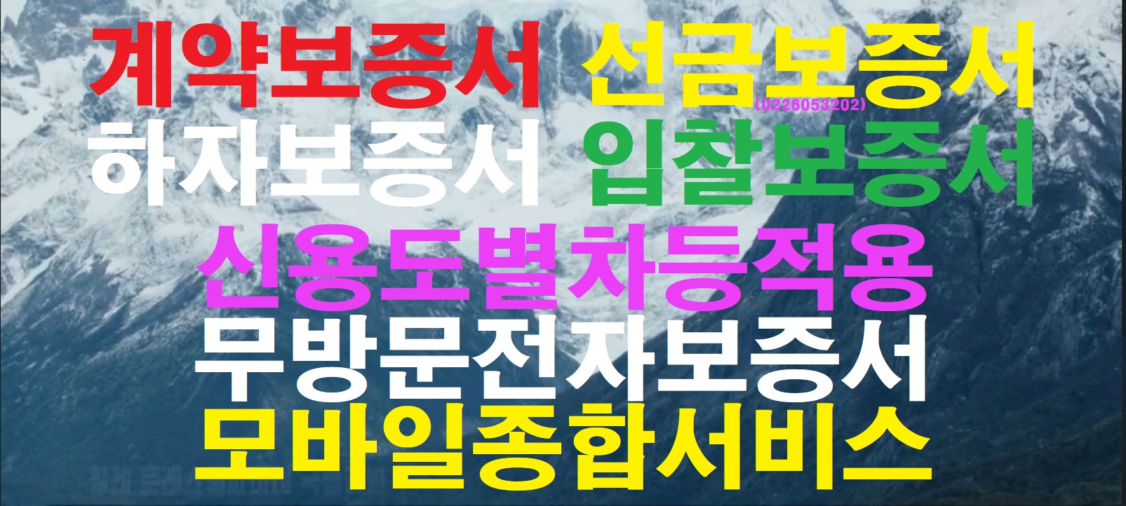 공탁담보제공명령보증보험증권,보석담보제공명령보증보험증권,상속세연부연납보증보험증권,증여세연부연납보증보험증권,위탁판매보증보험증권,지급보증보험증권,계약보증보험증권,선금보증보험증권,하자보증보험증권,입찰보증보험증권,정부보조금보증보험증권,안전동행지원사업지급보증보험증권,협약지원금보증보험증권,형질변경예치금보증보험증권,산지전용예치금보증보험증권,안전관리예치금보증보험증권,전기가스요금보증보험증권,임시전력보증보험증권,어린이집보증보험증권,운임지급보증보험증권,광고료지급보증보험증권,임차인채무보증보험증권,임대인채무보증보험증권,시공보증보험증권,공사이행보증보험증권,공사대금보증보험증권,하도급대금보증보험증권,용역대가보증보험증권,택배위수탁보증보험증권,화물위수탁보증보험증권,화물차위탁보증보험증권,신용카드가맹점보증보험증권,홈쇼핑영업보증보험증권,통신사업대리점보증보험증권,CMS이용보증보험증권,LH건설중인주택매입이행약정지급보증보험증권보증서,SH신축예정주택매매이행약정지급보증보험증권보증서,대체산림자원조성비보증보험증권,개발부담금보증보험증권,농지보전부담금보증보험증권,방산물자입찰계약선금하자보증보험증권,설계감리보증보험증권,신원보증보험증권직장인재정보증서,부동산중개업보증보험증권,개업공인중개사보증보험증권(개인2억.법인4억),대부업등록보증보험증권,여행알선업보증보험증권,아파트전세금보장신용보험증권개인임차용,이행지급예치보증보험증권강남선릉서초송파강동삼성역삼신논현양재영등포마포잠실광명여의도구로디지털을지로광화문남대문동대문명동양천강서관악금천동작강북광진노원도봉서대문성동성북용산은평중랑성남무방문모바일전자보증서종합서비스 직통 ☎ 02.2605.3202
