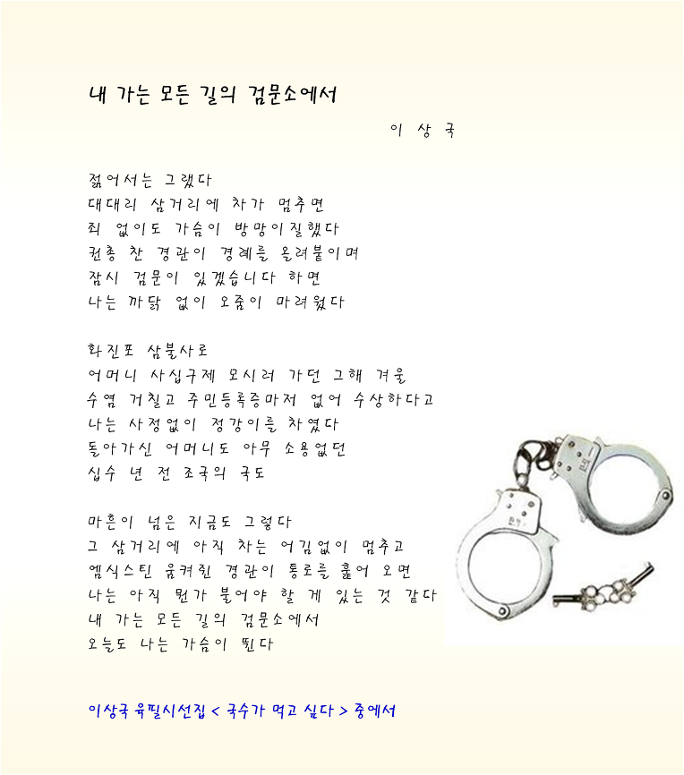 270. 내 가는 모든 길의 검문소에서 / 이상국