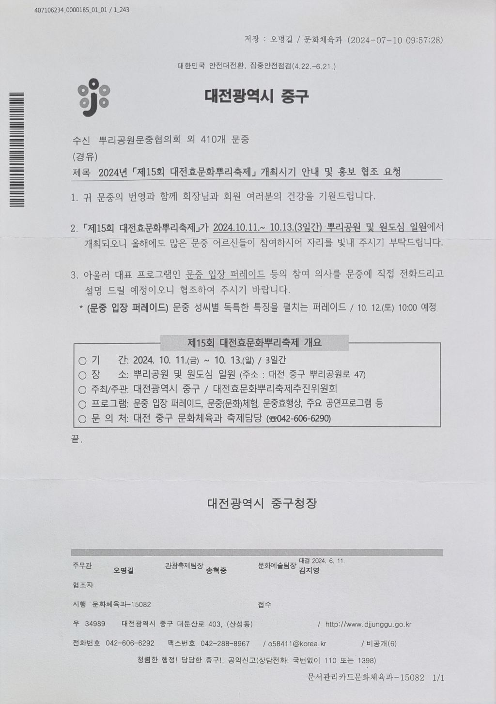 [孝문화뿌리축제] 제15회 개최 시기 안내 (2024년) 작성자{光復} 梁吉萬 (병부공 31세)|작성시간24.07.13|조회수64 목록 댓글 0 글자크기 작게가 글자크기 크게가 내용은 위와 같으니사진으로 대체하여 첨부하였습니다.이에 모든 제현님분들 참고 바라며늘 건강유의 하십시요. 다음검색 현재 게시글 추가 기능 열기 북마크 공유하기 신고 센터로 신고 댓글 댓글 0 댓글쓰기 답글쓰기 댓글 리스트