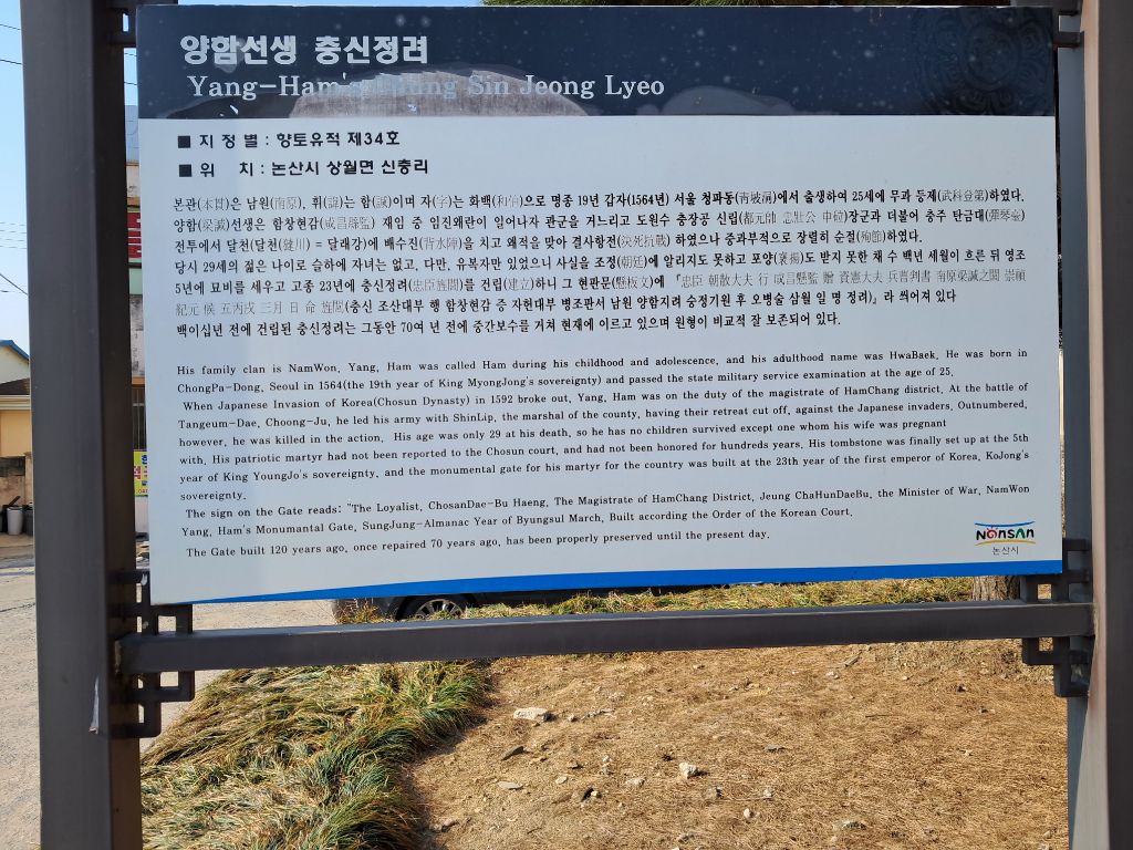 남원양씨 병부공파 18世 스물다섯 살에 무과 급제, 경상도 함창현감 재직 중 임진왜란 발발, 충주 탄금대에서 왜군과 싸우다가 순절, 추증 자헌대부 병조판서 겸 지의금부사 훈련원사 오위도총부 도총관