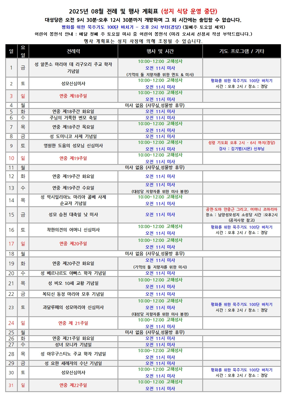 8월 행사표 작성자agnes1|작성시간25.08.07|조회수363 목록 댓글 0 글자크기 작게가 글자크기 크게가 다음검색 현재 게시글 추가 기능 열기 북마크 공유하기 신고 센터로 신고 댓글 댓글 0 댓글쓰기 답글쓰기 댓글 리스트