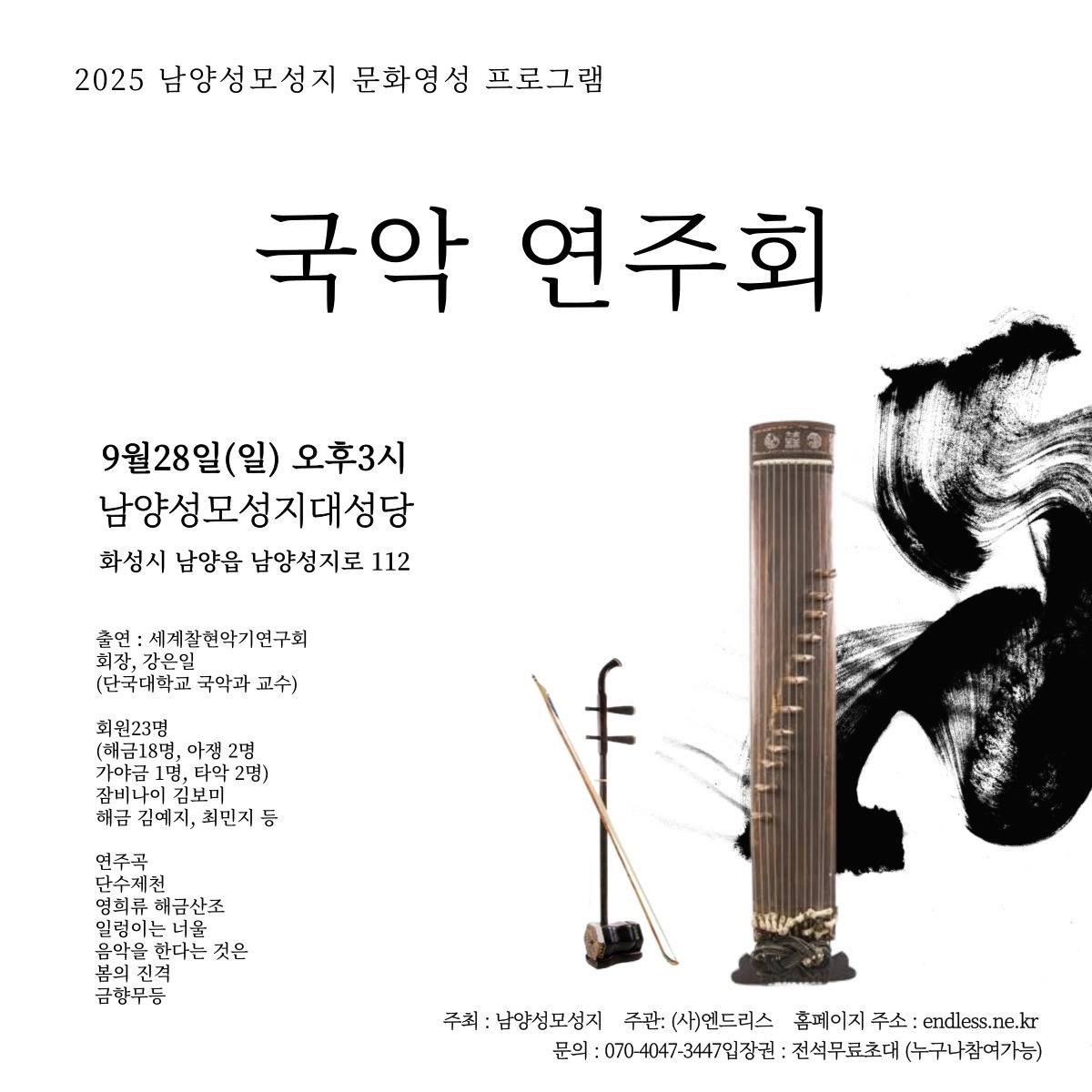 2025년 9월 28일 (일) 국악연주회 작성자agnes1|작성시간25.09.14|조회수156 목록 댓글 0 글자크기 작게가 글자크기 크게가 다음검색 현재 게시글 추가 기능 열기 북마크 공유하기 신고 센터로 신고 댓글 댓글 0 댓글쓰기 답글쓰기 댓글 리스트