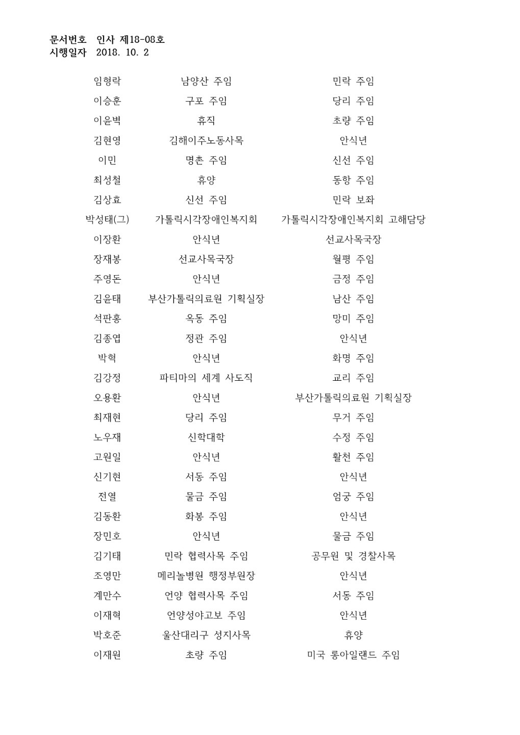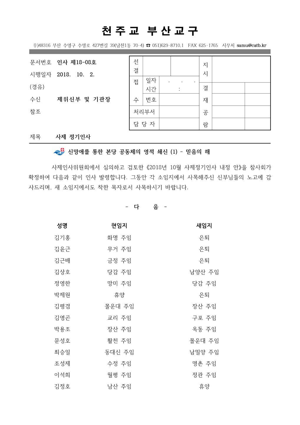 부산교구 사제 정기 인사이동 작성자토끼 두마리(심재경다니엘)|작성시간18.10.02|조회수1,074 목록 댓글 2 글자크기 작게가 글자크기 크게가 * 부임일은 10.12(금) 11:00 입니다.우리 임형락 이냐시오 주임신부님 성전 건립하시느라 고생만 하시고 가시네요.어디 가시든지 신부님의 영육간 건강을 위하여 기도드리겠습니다. 다음검색 현재 게시글 추가 기능 열기 북마크 공유하기 신고 센터로 신고 댓글 댓글 2 댓글쓰기 답글쓰기 댓글 리스트 작성자김민수 (글라라) | 작성시간 18.10.04 임형락 이냐시오 신부님, 영육간의 평화를 빕니다. 정말 감사드립니다. 수고많으셨습니다. 작성자이양미 도미니카 | 작성시간 18.10.10 이냐시오 신부님, 넘 넘 감사드립니다.2층 문화홀에 앉아 있으면 가을 야산이 눈에 확 들어옵니다. ~우리 남양산 성당 잊지마시고 늘 행복한 사제로서의 길을 가시길 기도 드립니다.수고 하셨습니다.~ 댓글 전체보기