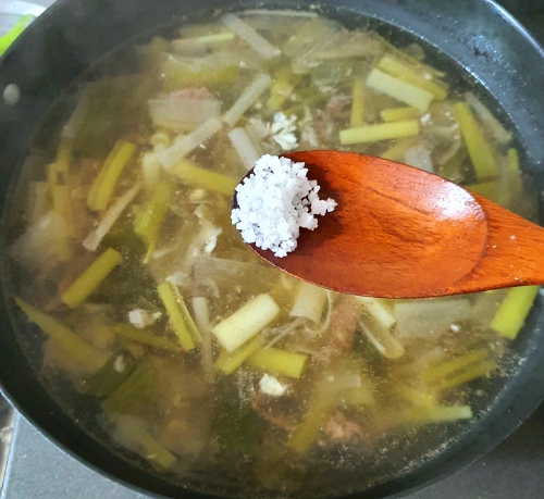 꽃소금 또는 굵은소금을 조금씩 넣어가며 간을 맞춰 주세요.