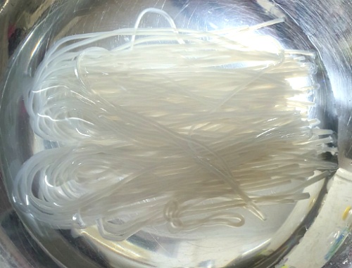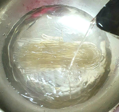 가장 먼저 해 둬야 할 것은 국에 들어갈 당면을 불리는 것인데요.
