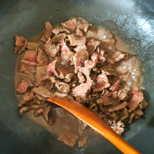 그리고 중간 불에서 약간 약한 상태로 소고기를 먼저 볶아주세요.
