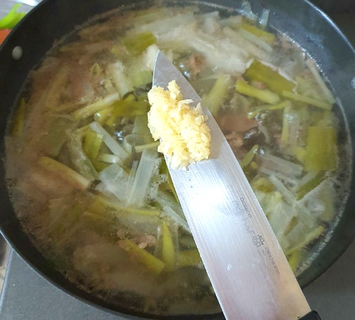 대파가 투명해지면 마늘 한 큰 술 듬뿍 넣어주고요.