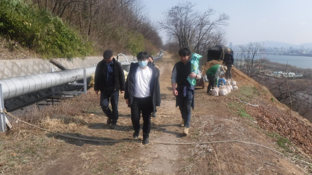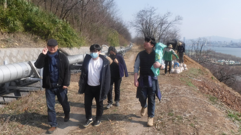 - 장소: 노을공원 중간순환길 유진~쌤소3까지, 가양사면~나무자람터~노을매점~천인공노숲~바람의과장~유진의숲~노을취수부 구간에서 빗물이용, 도토리씨드뱅크, 숲만들기, 씨앗부터키우기 증 전반 살펴봄