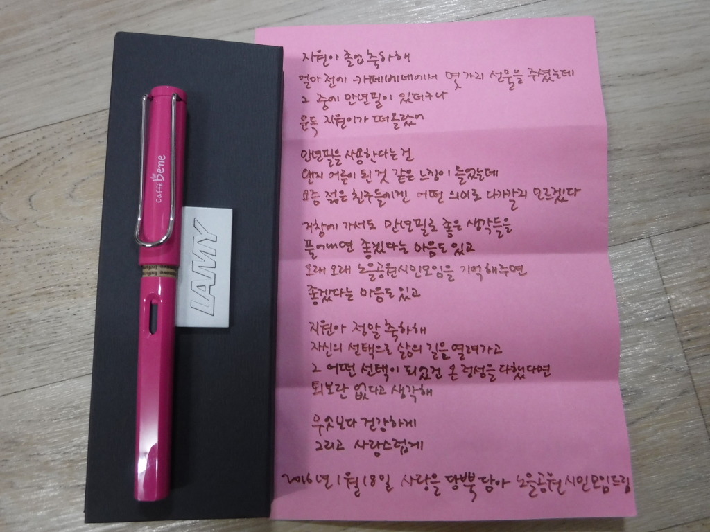 나모리 이지원님, 서울공항중학교 졸업하고 거창고등학교 갑니다. 축하합니다. 거창 친구들과 나모리활동 계속하기로 약속해주셨습니다.
