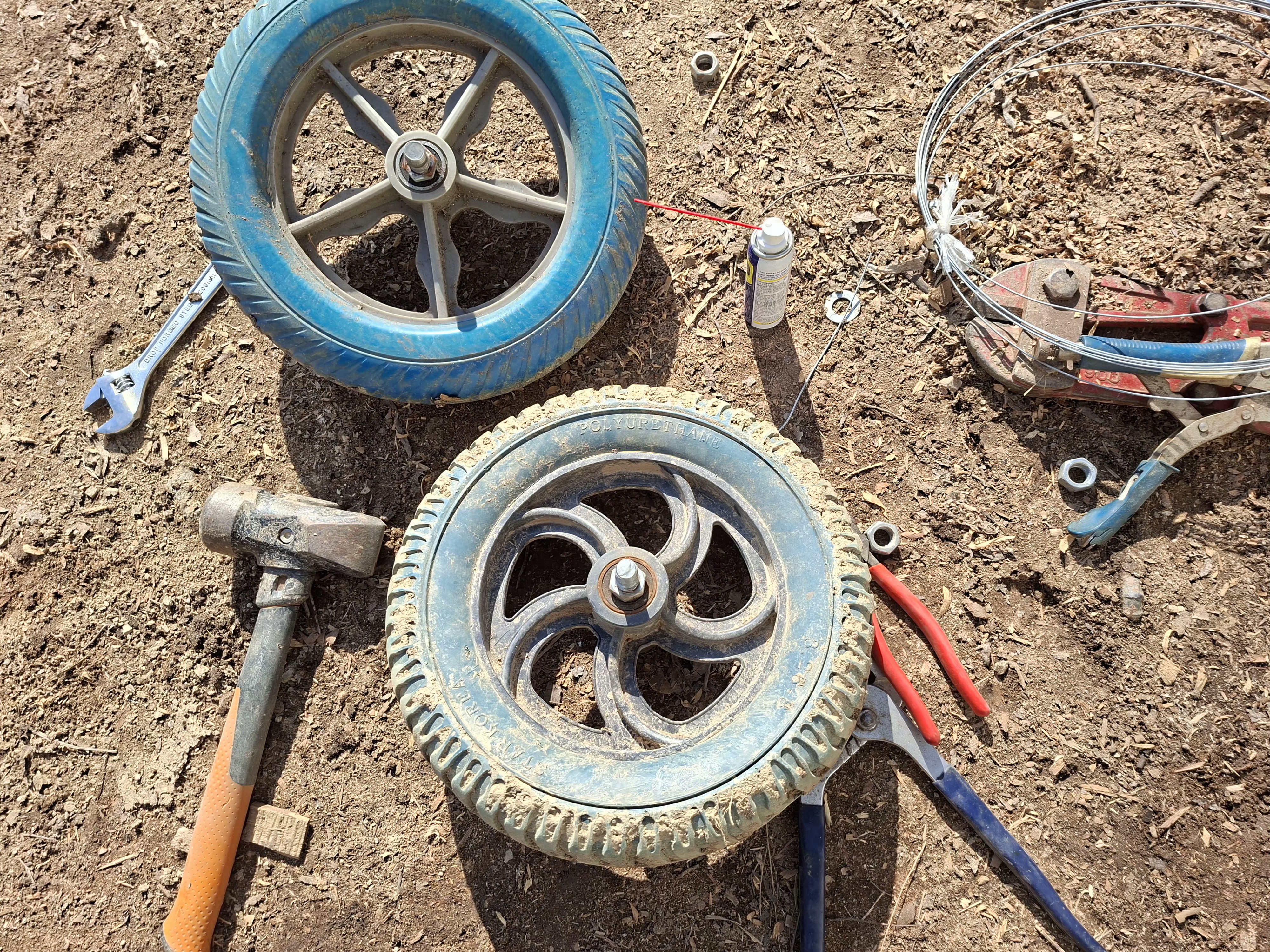 내용: 장비 정비(외발 수레 수리-덴트 작업, 반생이 작업, 바퀴 교체, 철근 가세 용접 작업, 우레탄 바퀴 추가 구매 필요)