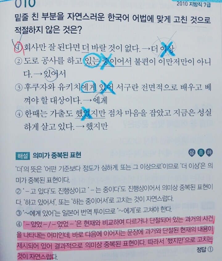 작성자진진 작성시간 15.05.18 질문2. 두번째 문제의 4번에서 았었, 었었의 대과거(?)적 표현은 원래 가능한 것인가요? 4번의 문제의 해설이 잘 이해가 가질 않는데.. 만약에 문장을 "한때는 가출도 했었지만 점차 마음을 잡았고 성실하게 살았다"라고 표현을 한다면 이 문장에서 '았었' '었었'의 사용은 가능한 것인가요?