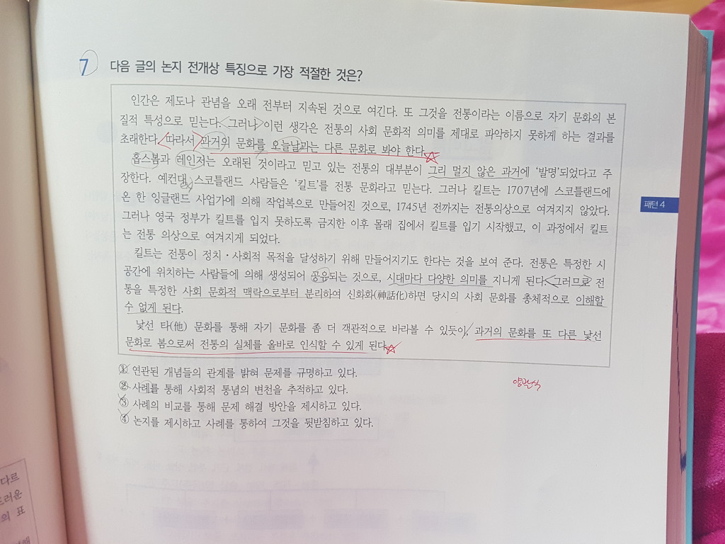 논지라고 하면 157p 7번 문제 1문단의