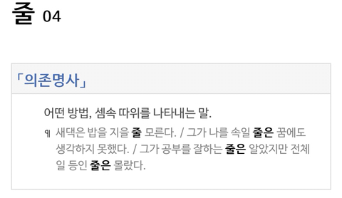 의존명사 줄 질문 작성자anniec|작성시간19.03.31|조회수544 목록 댓글 1 글자크기 작게가 글자크기 크게가 선생님! 마무리 강의 자료에 의존명사 줄은 목적격 조사만 붙는다고 되어 있는데요 사전에 찾아봤는데요!줄 4의 의존명사가 목적격 조사 을만 붙는 거 맞나요?!? 다음검색 현재 게시글 추가 기능 열기 북마크 공유하기 신고 센터로 신고 댓글 댓글 1 댓글쓰기 답글쓰기 댓글 리스트 작성자진진 | 작성시간 19.04.01 아래 '줄'은 의미가 전혀 다릅니다. 수나 단위입니다. 댓글 전체보기