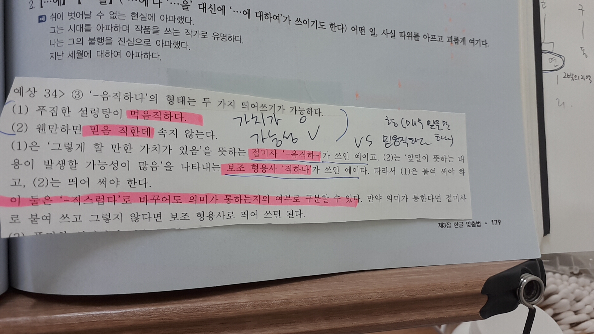 여기해당부분인강들었는데선생님께서여기예시를 먹음직하다 라고 하셨더라구요 근데 먹음직하다는 제가알기론 음직하 부분이 접미사라서 무조건붙여쓰는거라고알고있어서 혼란...(선생님워크북에서했던내용이라이렇게알고잇엇어여)