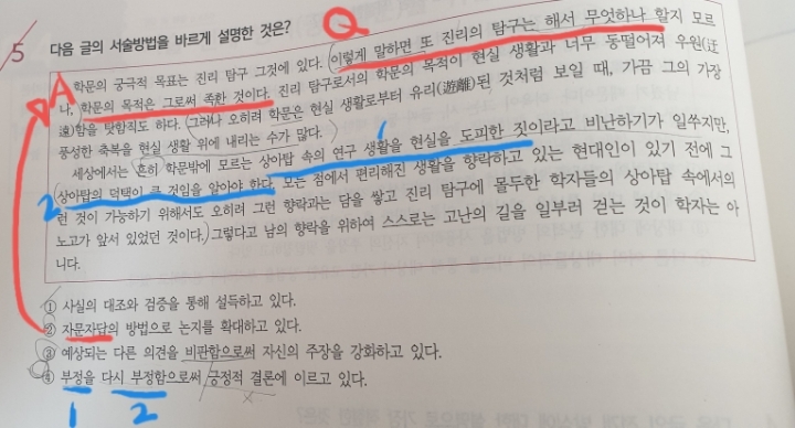 작성자진진 작성시간 20.03.04 1. 자문자답이 아니라 다른 이들의 의문이나 반박을 예상해서 미리 답을 제시하는 것입니다. 논지 강화의 한 방법입니다.