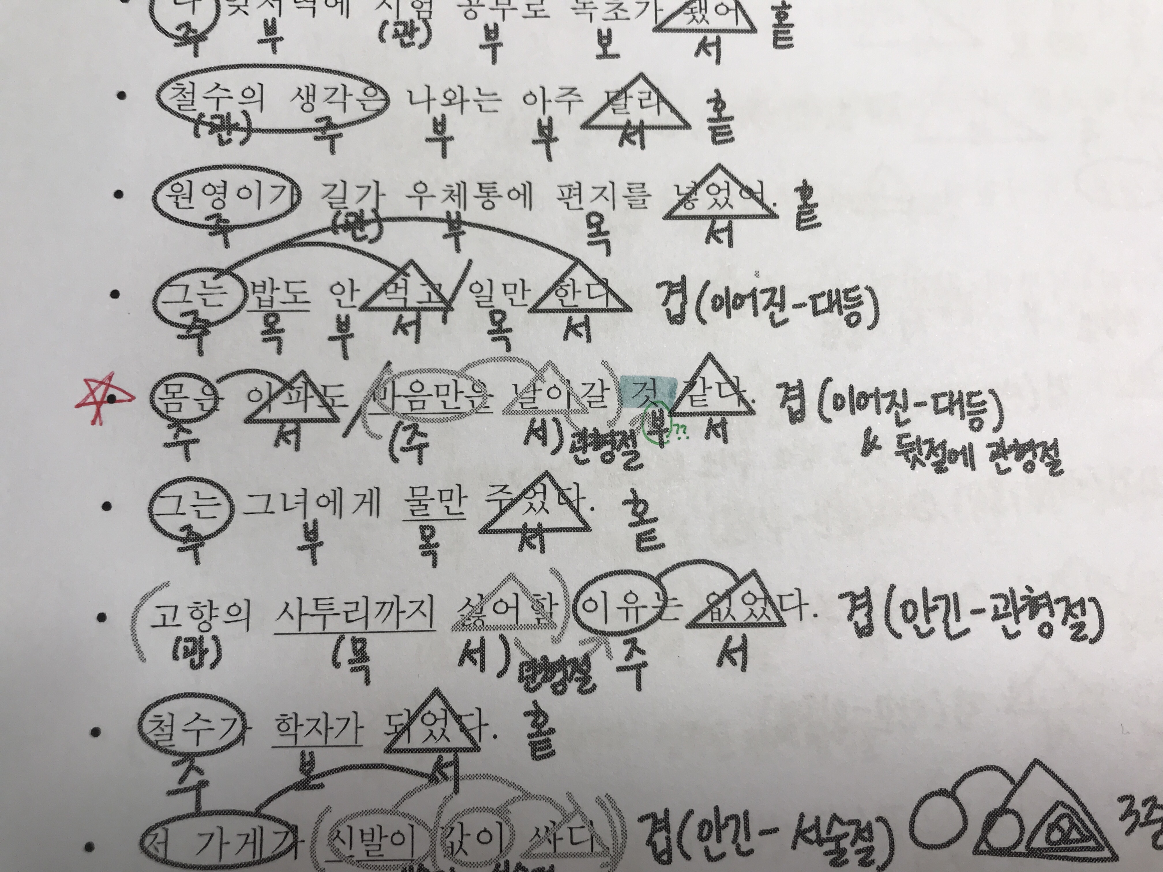 화제의 모고 1주차 L1/L2 워크북 문장 짜임새 분석 훈련 질문입니다.